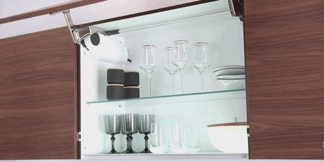 你也可以使用智能手机控制橱柜,只要滑动屏幕就能控制台面高度。当你还在觉得用手机开空调而神奇的时候,人家已经用手机控制橱柜了。