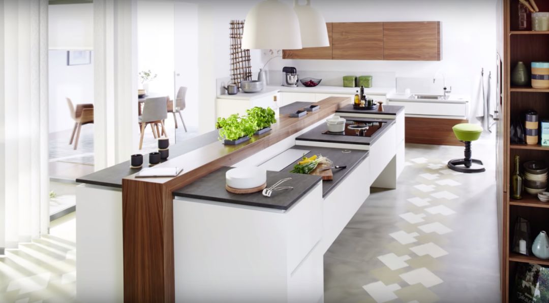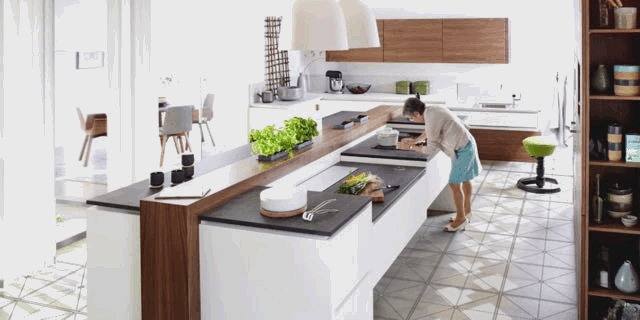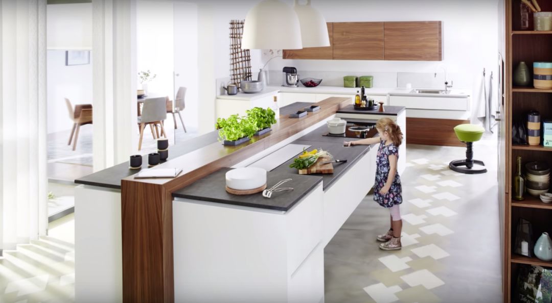 德国的 Tielsa 公司研发设计的厨房,它叫 connected kitchen 。台面可自动升降,按照不同人的身高任意调节,小朋友也能操作。这就不用纠结是老公下厨、老婆下厨或者老妈下厨了,谁下厨都无所谓。