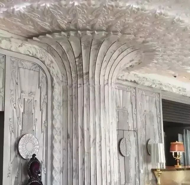电梯门套如果可以设计为相对独立的造型,放样就简单了,所以我们要认真消化设计图纸,在不改变设计效果的前提下可适当调整收口方案,让放样更容易操作。
