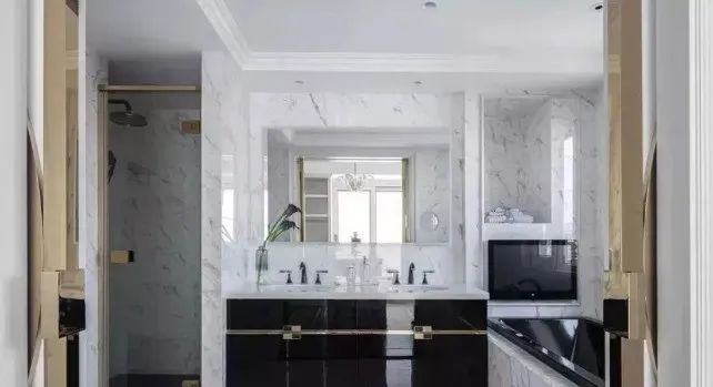 座厕与淋浴房的墙地面一般都会做石材,浴室除了洗手台面和浴缸台面及立板做石材外,地面大都是石材,墙面不会全部做石材,常规做法是腰线以下做石材,墙面石材就是腰线、墙裙和脚线。