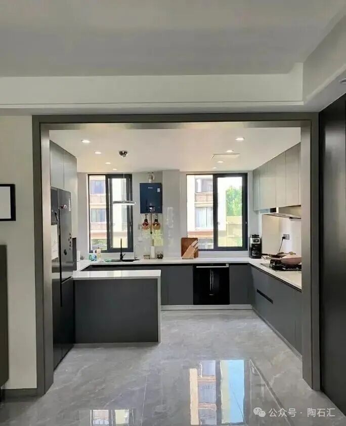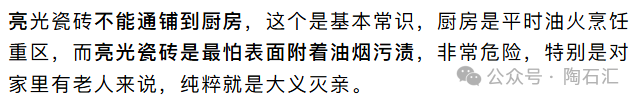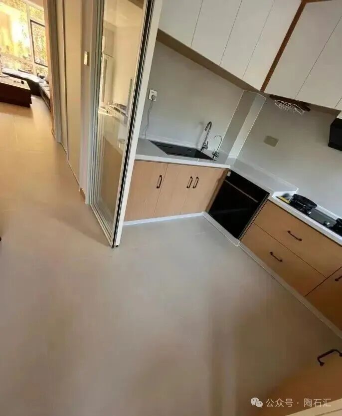 柔光瓷砖是可以直接通铺厨房,防滑放大空间,而且更显档次