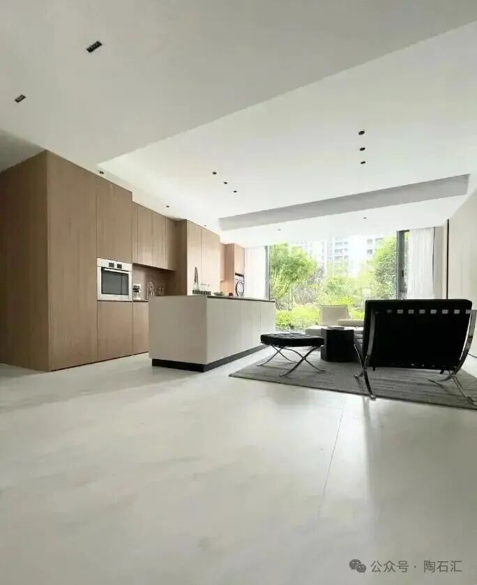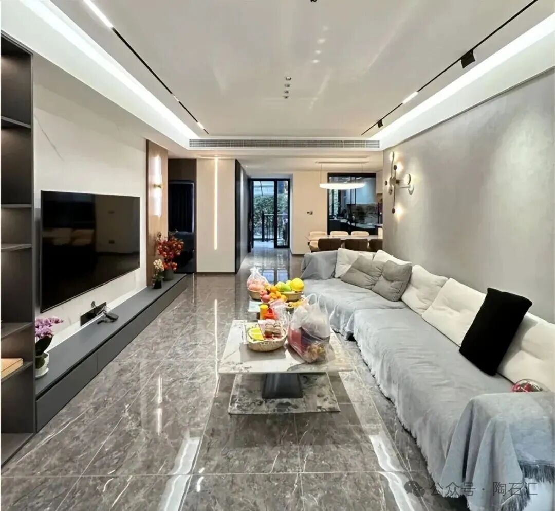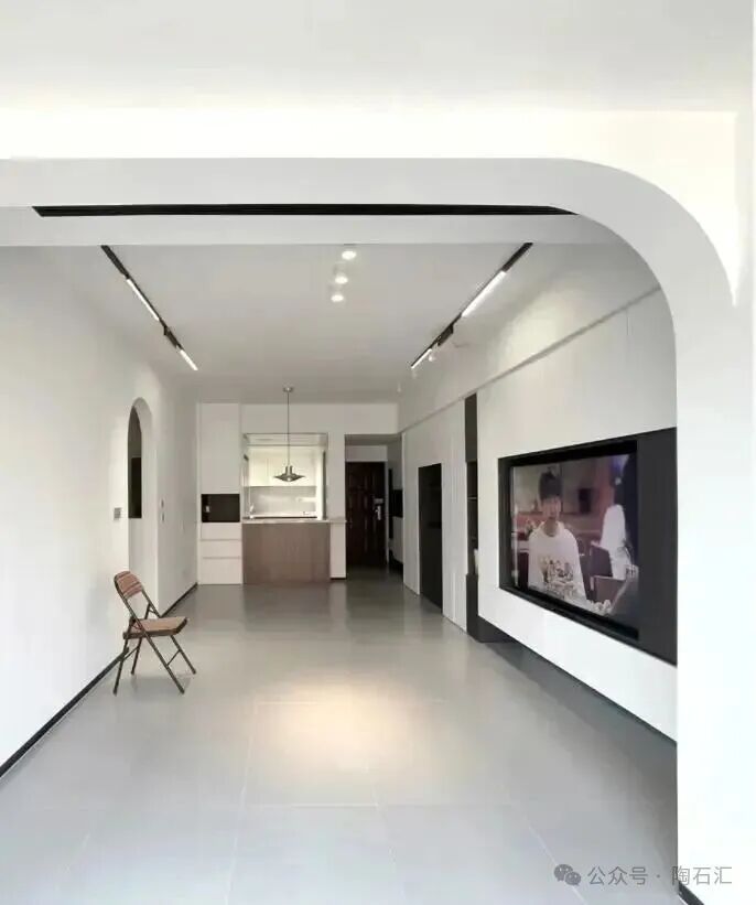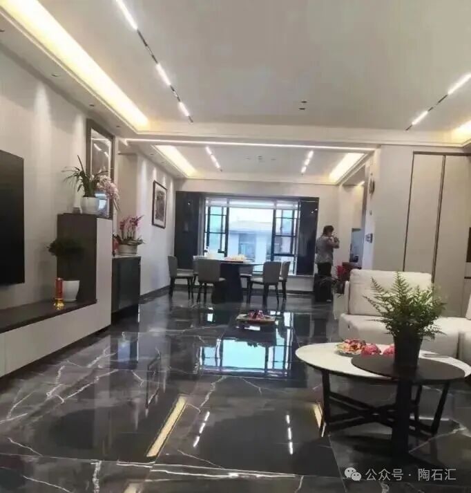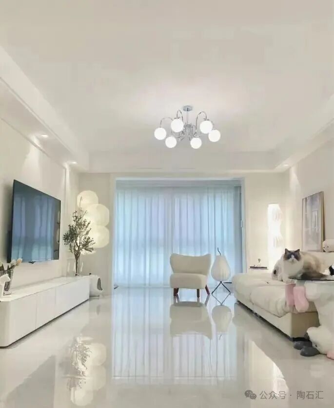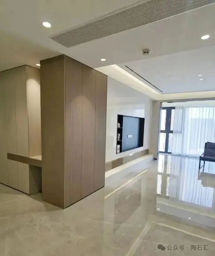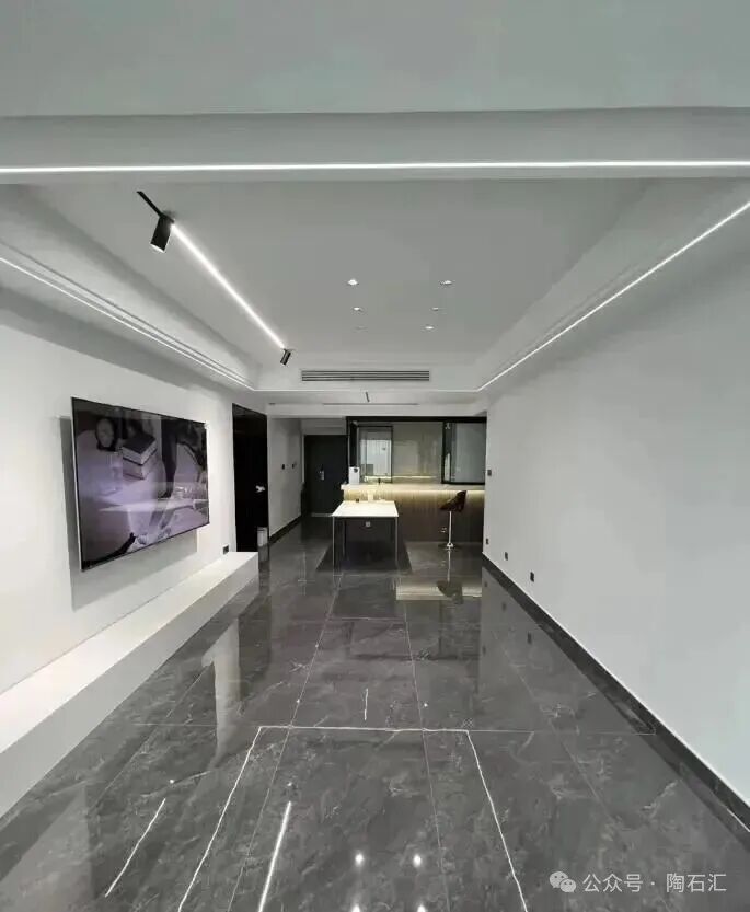 柔光瓷砖通铺,适合极简装修无主灯的风格,同色美缝做好非常柔和好看