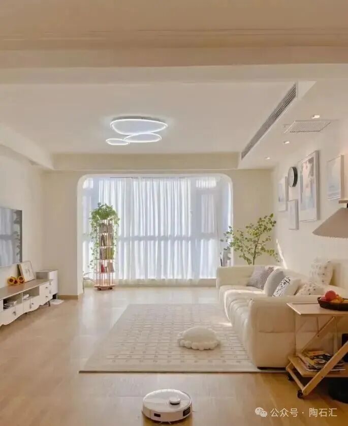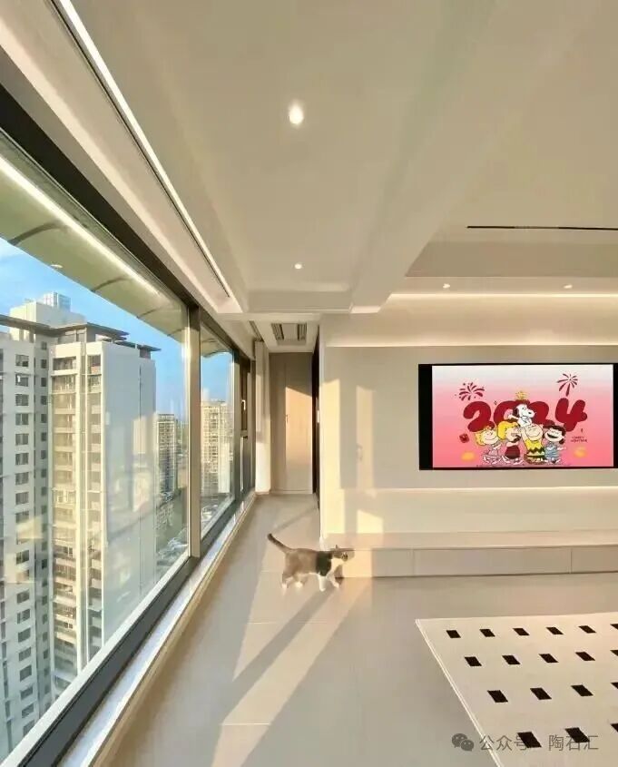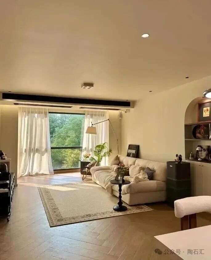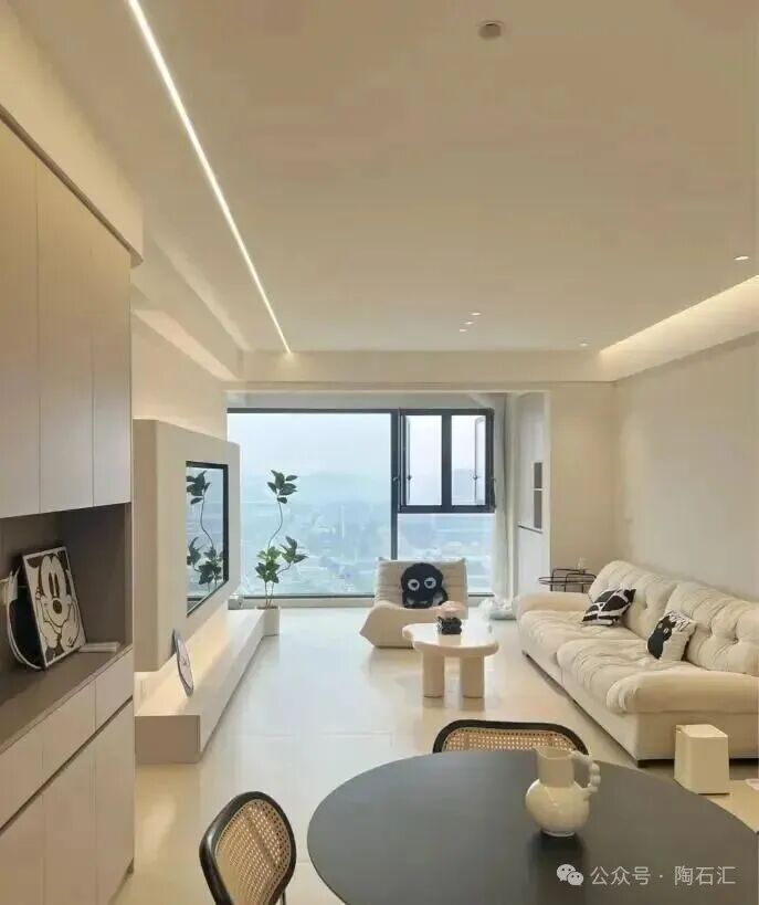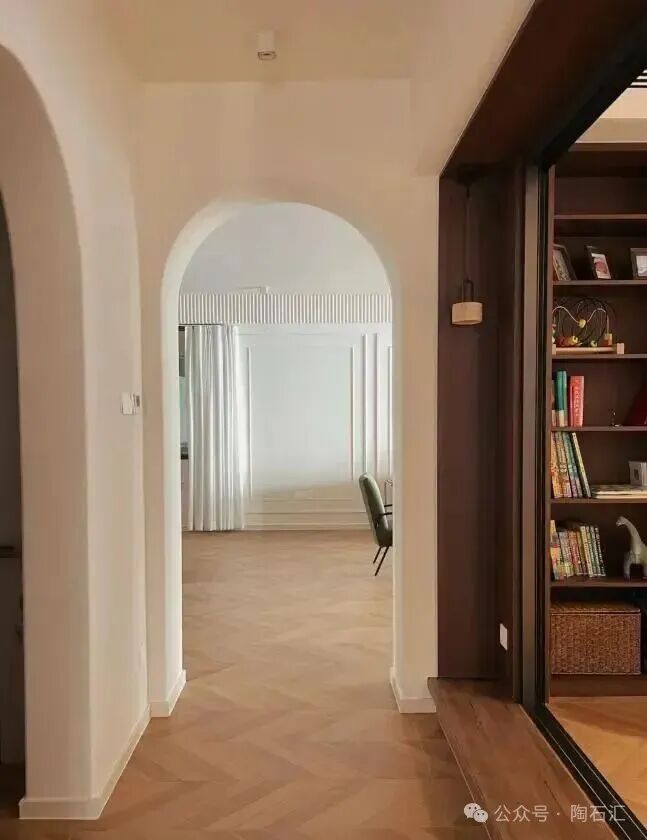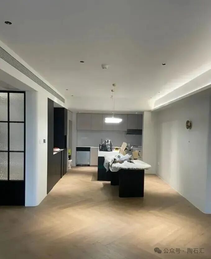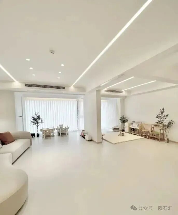柔光瓷砖通铺,适合极简装修无主灯的风格,同色美缝做好非常柔和好看