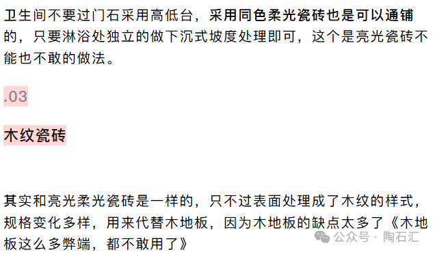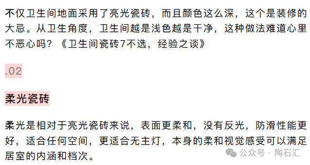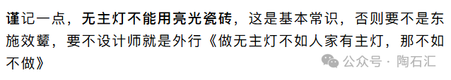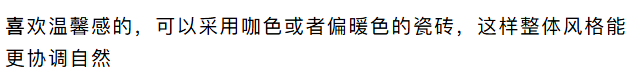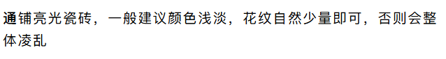 带纹路图案的柔光瓷砖也是可以的,最好纹路不要太大太明显