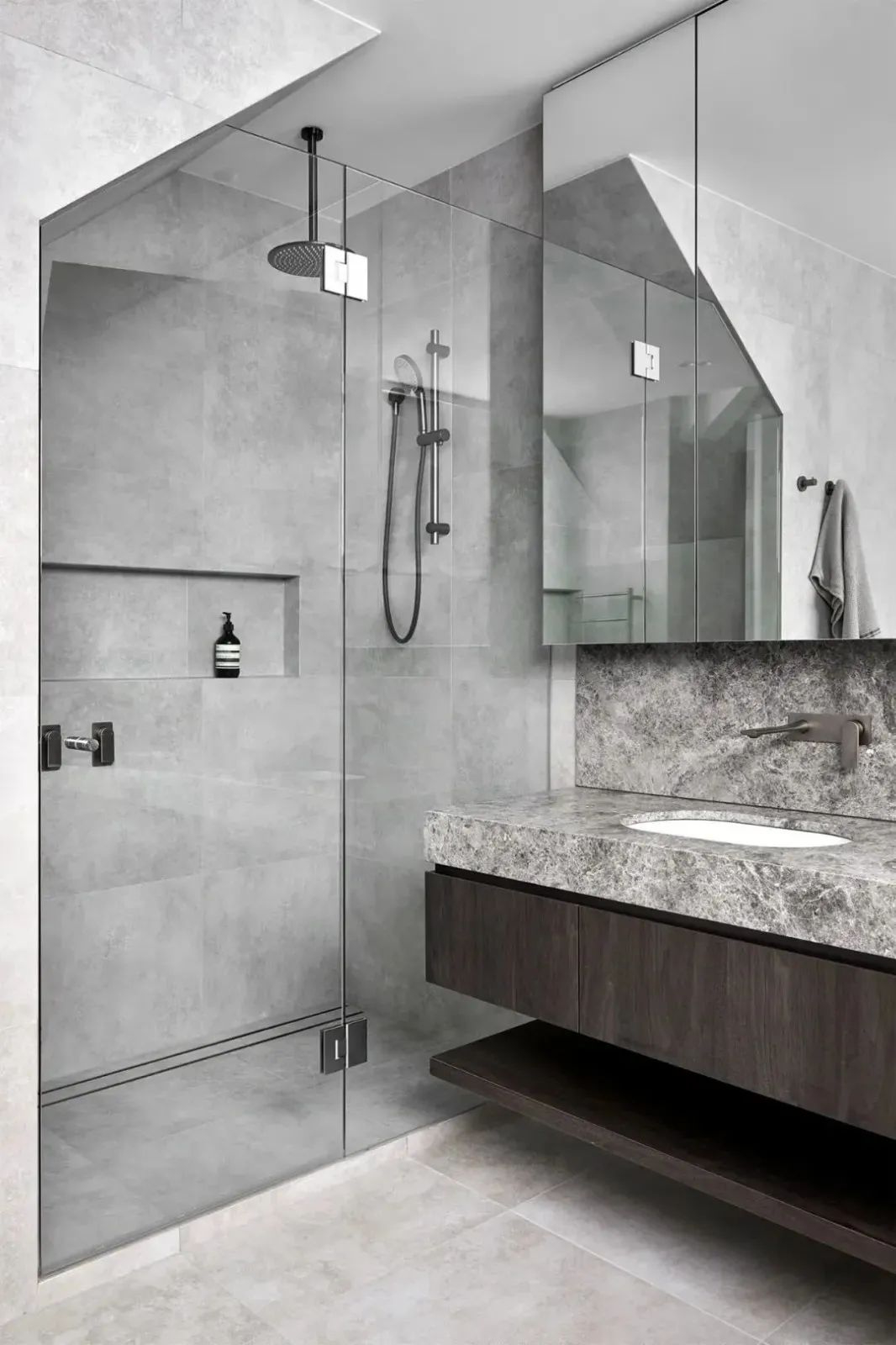 石材浴室柜的优点在于,第一材料方便,切割好之后粘在一起就行了,比砖砌的要方便一些,第二,用石材做浴室柜,厚度小,不占地方,好看耐用,不怕水不怕潮。