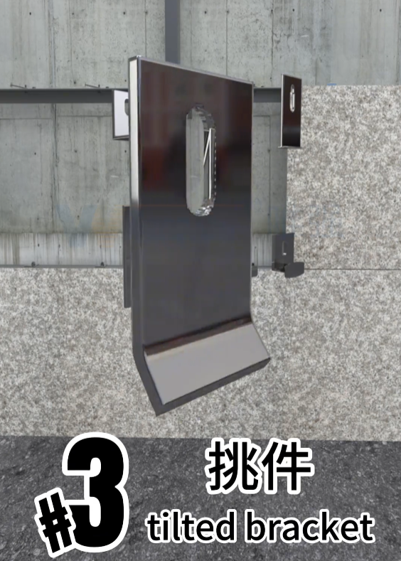 石材挑件,一般用在最底层或者顶层,为石材提供多两个固定点,形成4个支点,更牢固。一般与双勾或者焊件搭配使用。