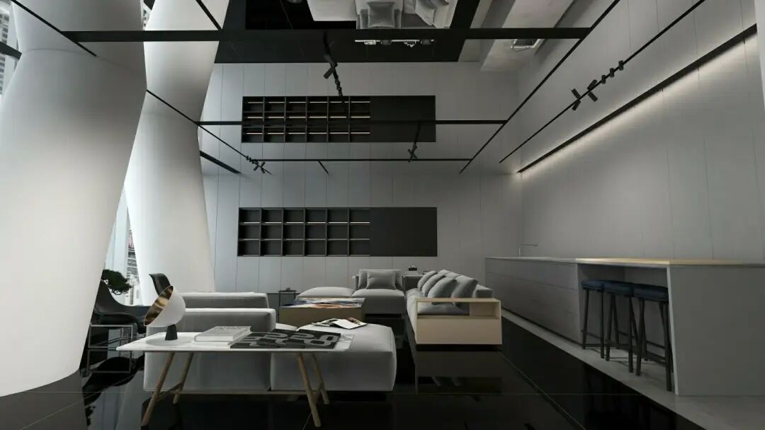 白色的墙面搭配灰色的沙发和黑色的茶几,色彩对比鲜明却又和谐统一,营造出一种简洁大气的视觉效果。隐藏式的收纳设计,让空间更加整洁有序,避免了杂乱无章的感觉。