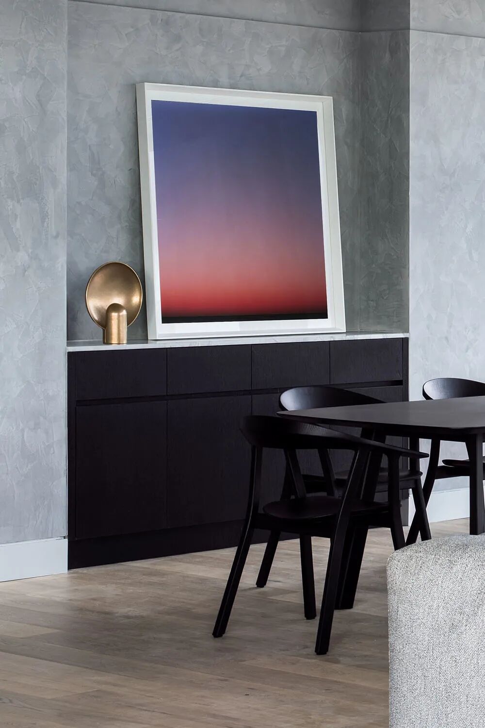 黑色大理石背景墙,与墙面的浅色调形成鲜明的对比,这样的空间看上去更加稳重。