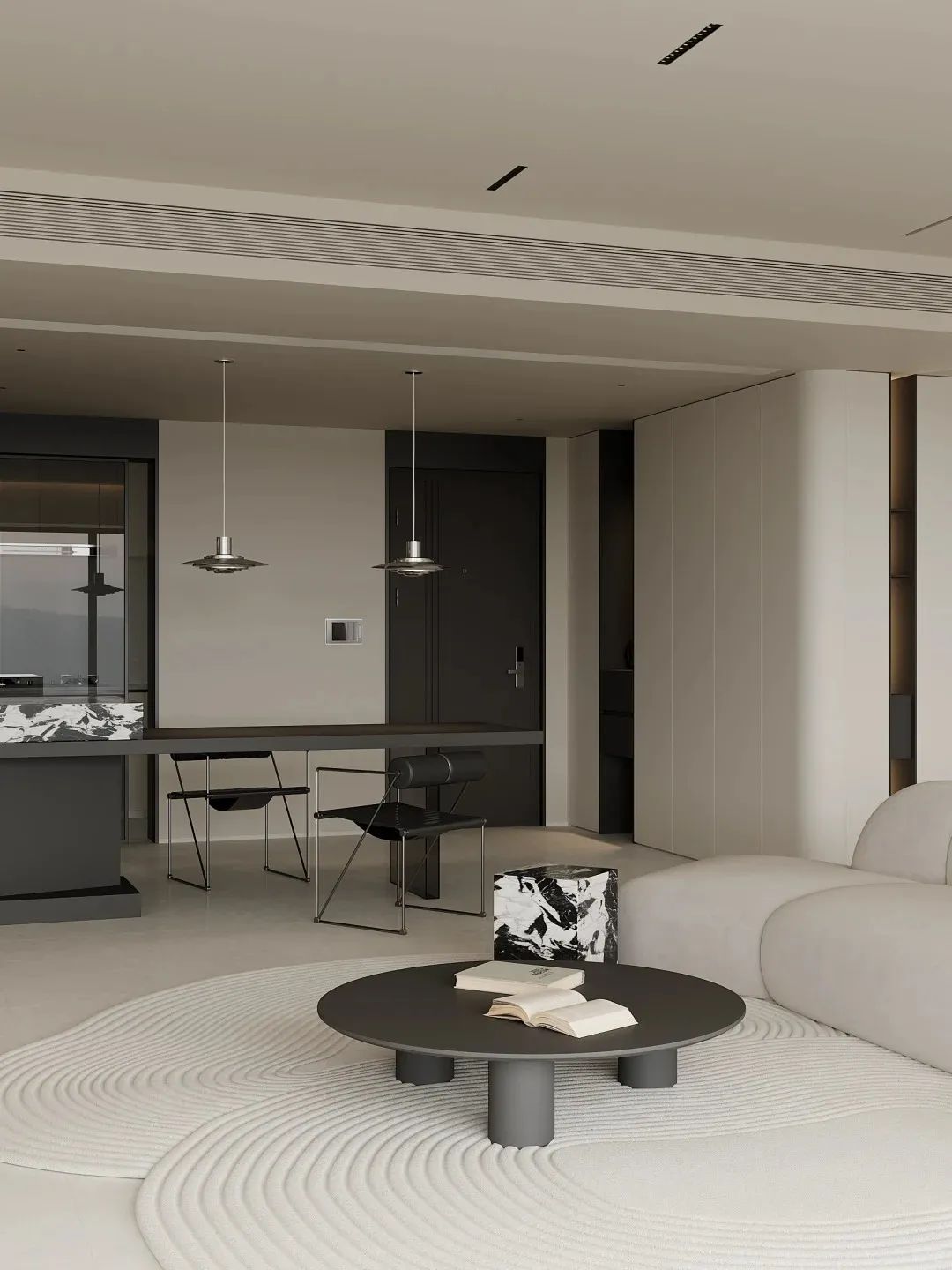 现代简约风格倡导开放的空间布局,强调流畅的动线和通透感。墙壁和隔断通常被减少,以创造更大的空间感和连贯性。
