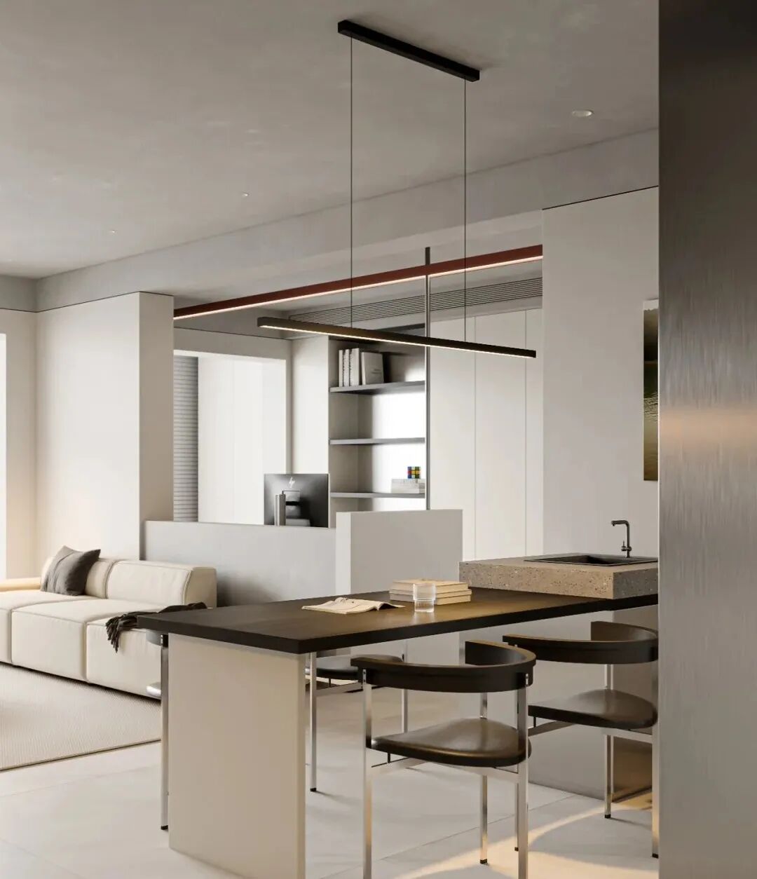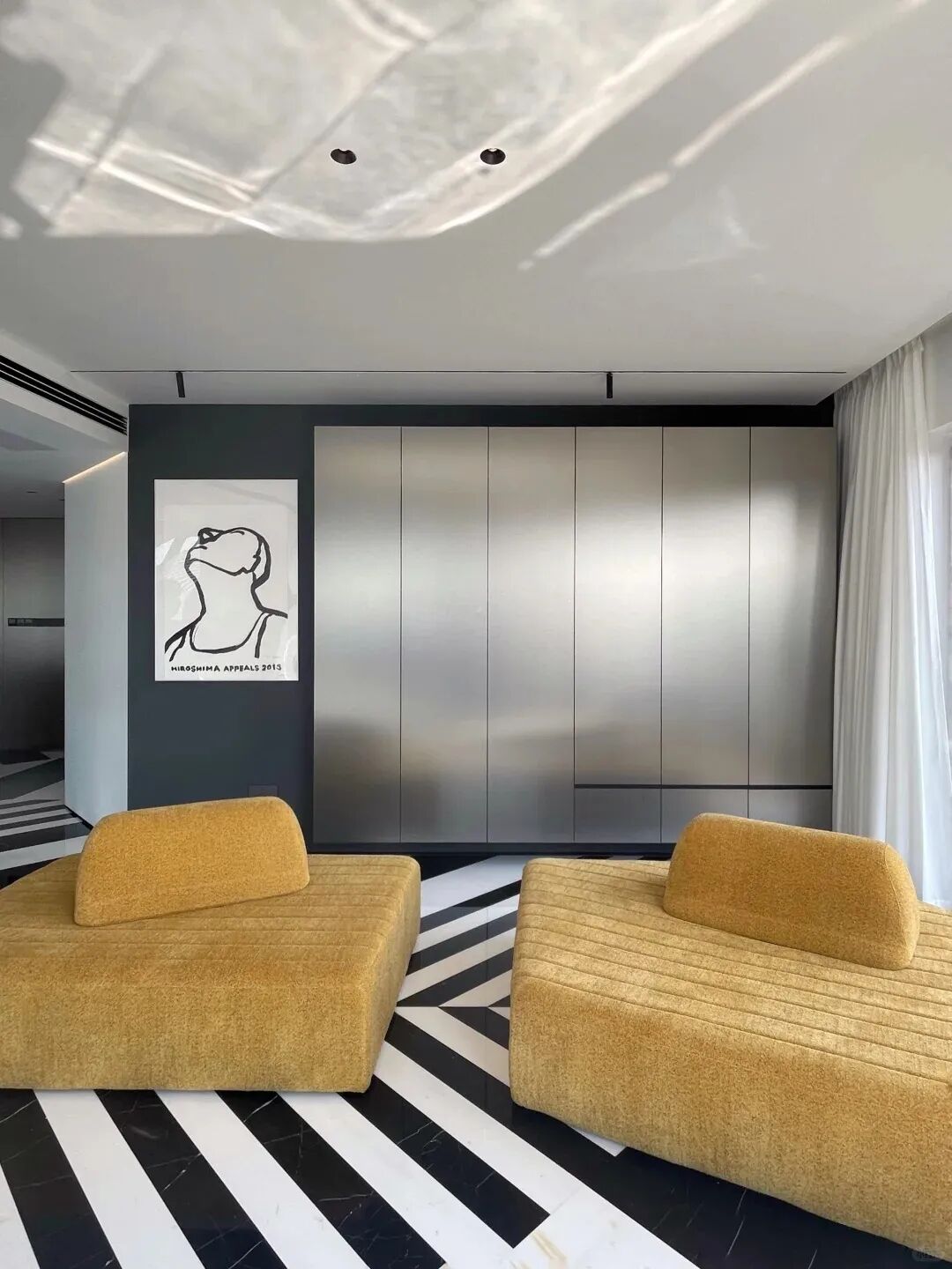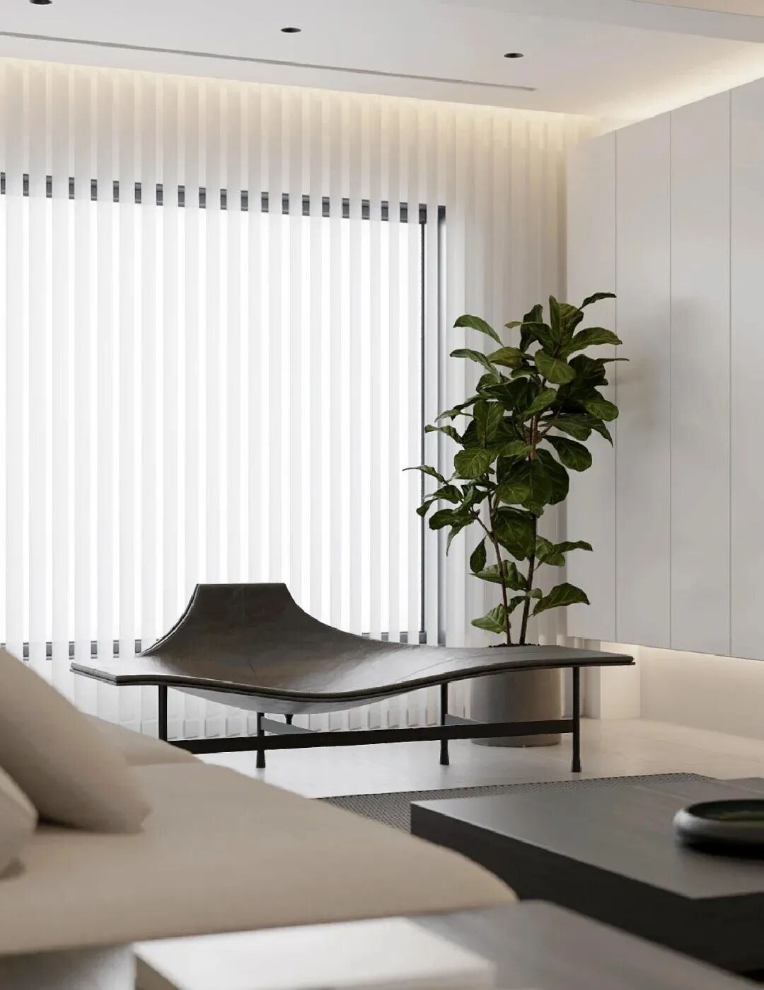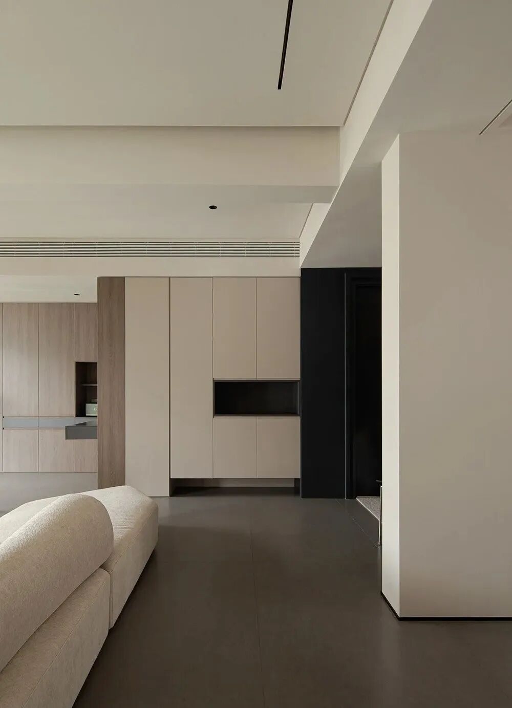现代简约风格强调简洁的线条和形式,避免过多的装饰和复杂的图案。空间中的线条简洁流畅,无论是天花板的造型还是家具的轮廓,都以简单的几何形状为主。