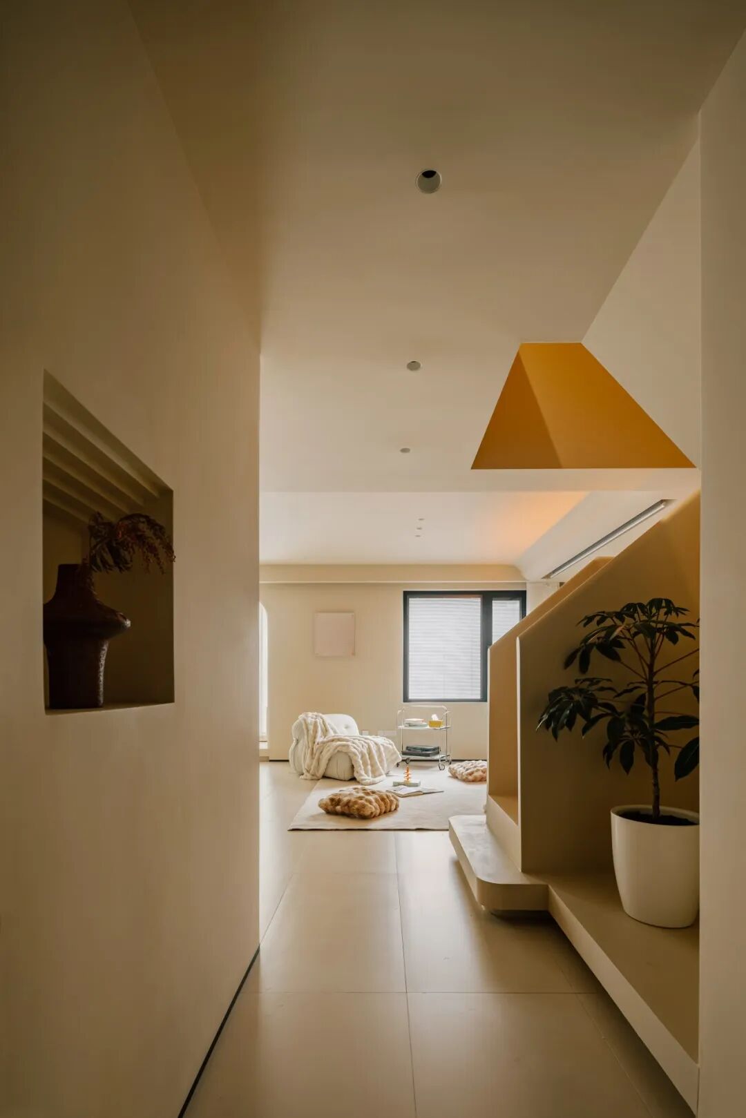 入户见客厅侧墙壁龛,阶梯递进的层级关系丰富视觉,给人“有趣简雅,脱俗不凡”的第一印象。