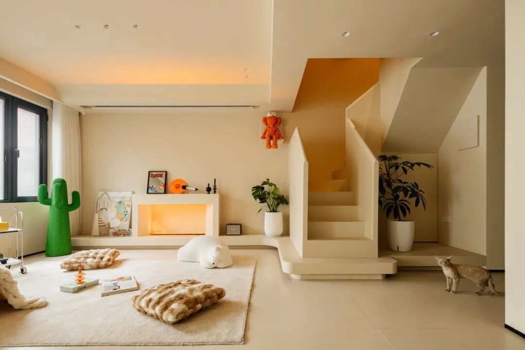 屋主追求非标签化设计,融合现代极简与活泼色彩,打造独特空间,既简洁又带梦幻感,恰似其夫妇形象:稳重而不失童真梦想。