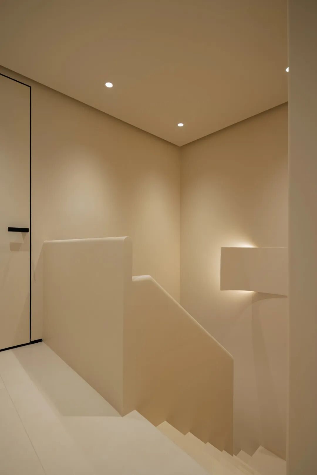 重设楼梯,抬升地台,融合楼梯与客厅背景墙,强化整体感,分隔空间又不减通透,增强家居秩序性。