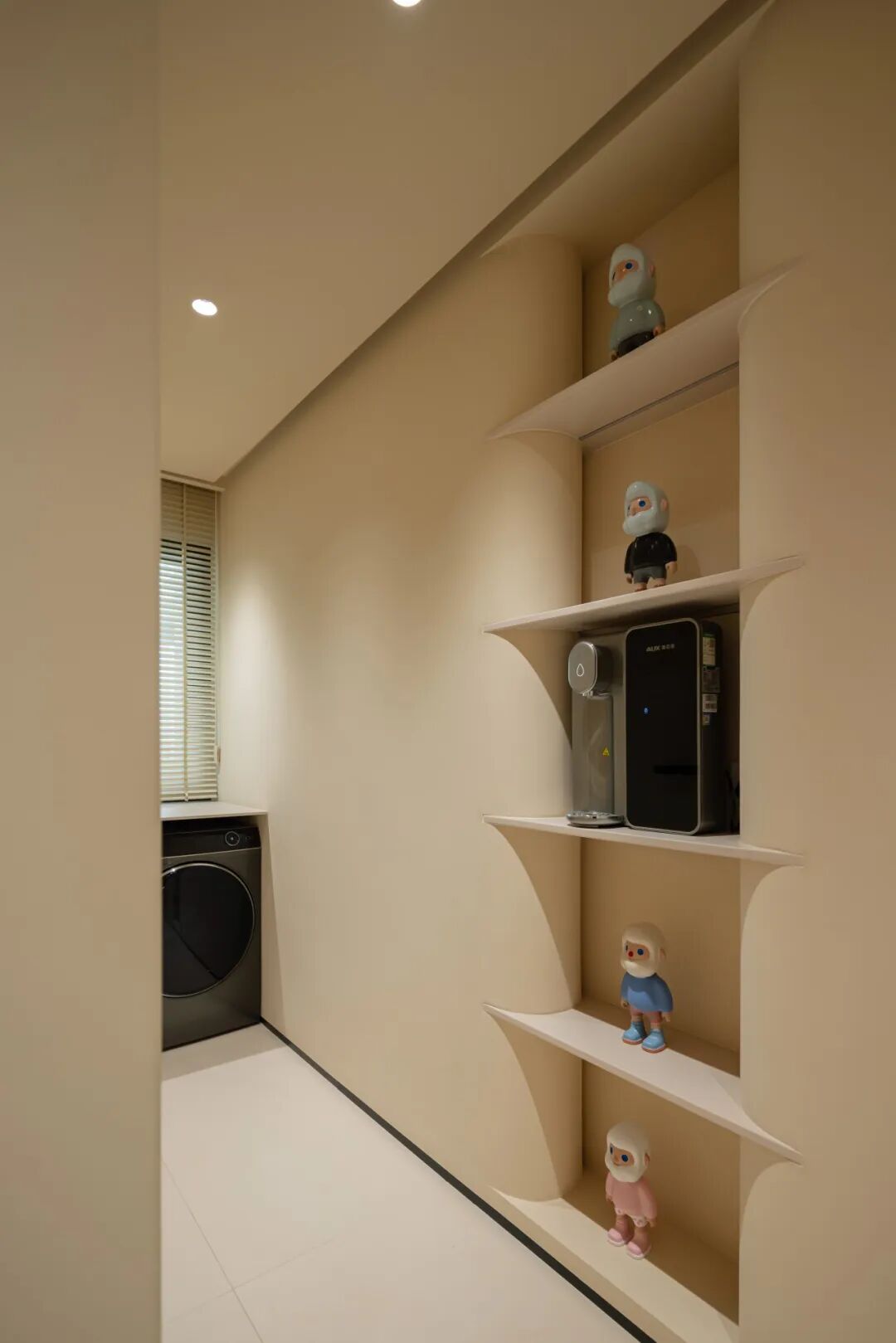 客卫扩至阳台,增加主卫面积设浴缸,走廊末端置洗衣机烘干机,家政区独立,使用便利,清洁省心。
