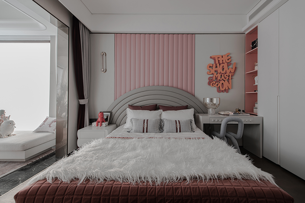 柔软质感的材料,借助日光雕刻,找回细微的、缓慢的温柔,在女孩房的空间序列加入暖色调的酝酿情绪,形成光影、色彩与调性的三方对话。
