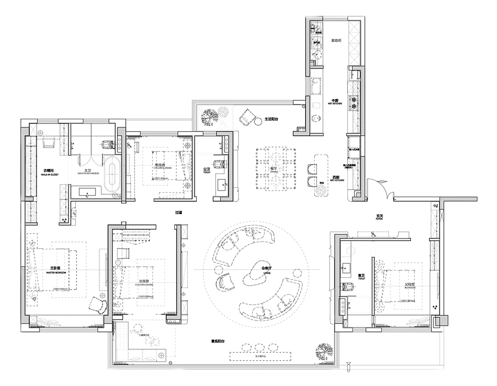 石材案例 | 215㎡轻奢大平层,层次丰富