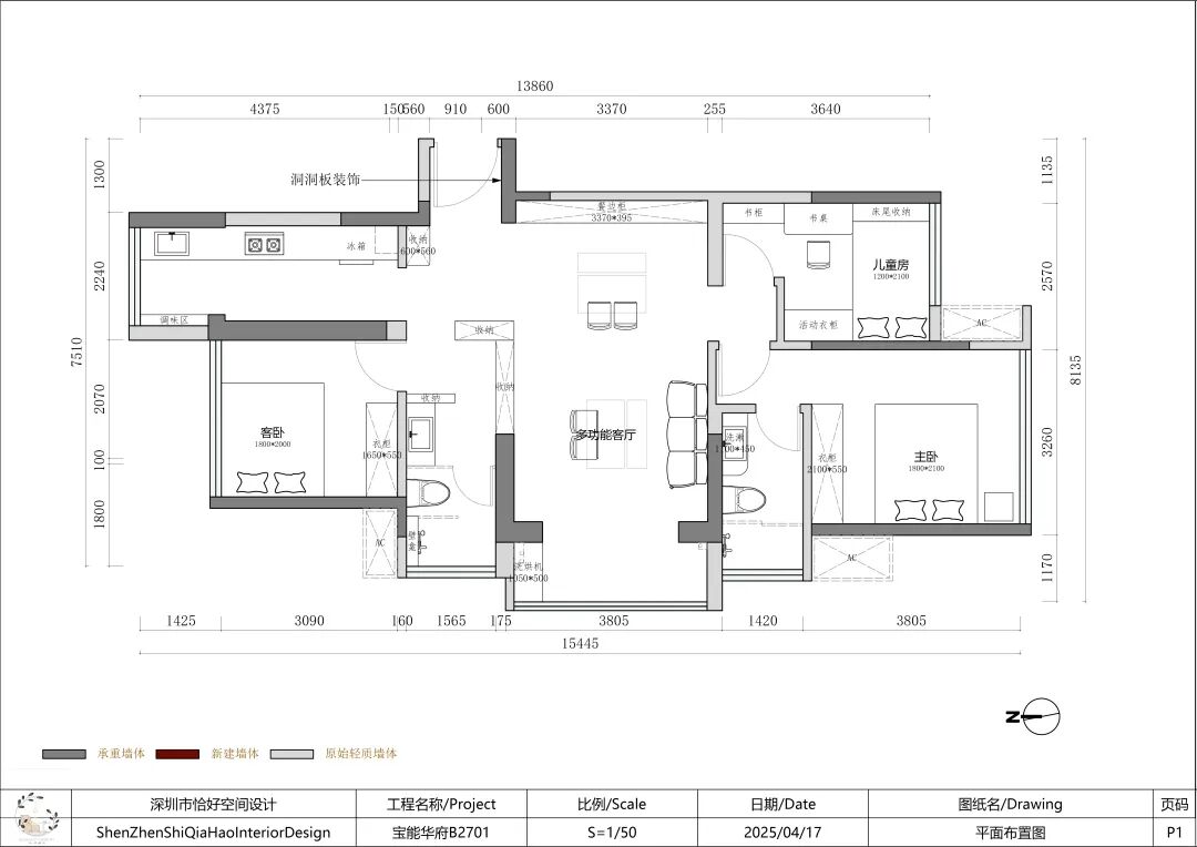 2、客卧的“无固定功能绑定”,后期可以根据需求改成“书房+临时床”“瑜伽房+储物”,是典型的“弹性空间”设计。