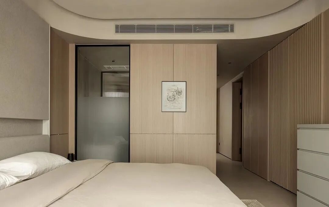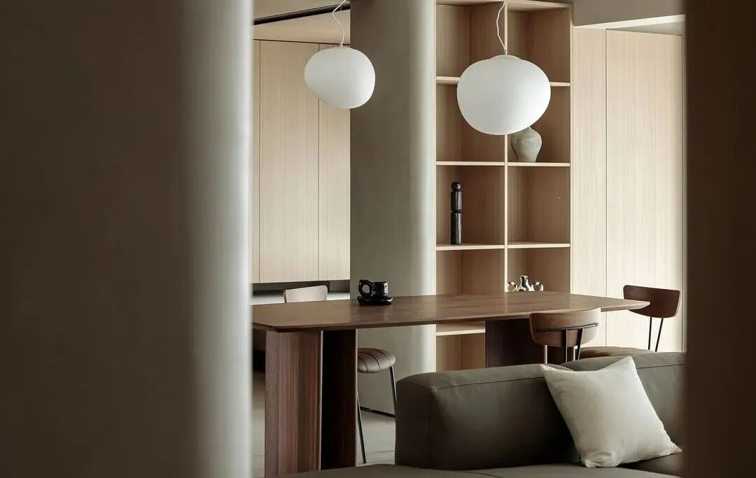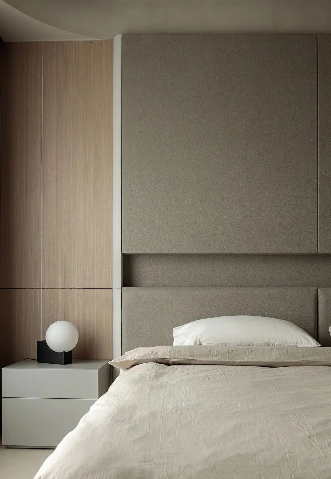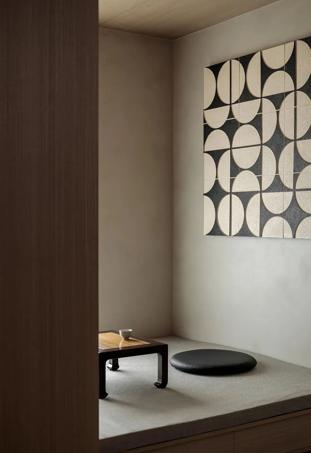 改造前:1.原户型的整体空间分割较为密闭,缺少通透感2.进门通道处空间感狭窄,限制使用面积3.阳台与客厅之间的墙体有碍视线,影响空间通透性改造后:1.拆除进门通道处的隔断墙体,合并空间,使整体视线更加开阔2.玄关与原有客房空间连贯3.第一空间作为休闲、餐饮使用,设计为西厨和茶室空间4.茶室空间运用推拉门隔离,即可开敞,又可私密5.连通生活阳台与客厅,扩大公共空间使用范围6.原阳台区作为活动空间使用,满足日常健身器械使用7.扩大主卧空间,将卧室、衣帽间、卫生间连通,使空间连贯玄关作为第一空间,内与外、快与慢均由此界定。将过道空间与西厨吧台链接,可直达茶室区域,将定制与生活严丝合缝,使空间拉伸感更加明显,同时又显得时尚高端。客厅整体空间以极简大方为主,客厅与阳台打通引入自然明亮的采光,电视墙以定制造型设计,让客厅显得简雅大方而舒适。沉静的灰咖色调场景中布置上精致舒适的家具软装,并加以文雅艺术的小细节饰品布置,彰显优雅的高级设计氛围。厨房设立了开敞西厨吧台和传统厨房相结合,调烹、吃食,动线明了,使餐饮空间也可以是多变的、灵动的、随性的。不仅为主人提供了一个现代时尚而方便的烹饪环境,西厨吧台让用餐空间更加时尚精致而文艺高级,整体提升新家格调,低调奢华,营造极具氛围感的用餐氛围。餐厅餐厅与客厅空间连通,风格保持一致,采用开放式设计,增加空间的通透感,提高房间的透光效果。布置装饰品使得用餐氛围精致优雅而大气,去繁留简,常见的线条和几何图形的交织将空间个性展现出来。卫生间卫生间的设计符合现代的前卫感,将空间利用率最大化,保证实用方便的功能性,日常显得干净整洁。卧室尽可能不用装饰和取消多余的东西,以简洁的造型、纯洁的质地、精细的工艺为其特征。通过软装的配合显示出美感,营造出安静的氛围,让看上去明朗宽敞舒适的家,来消除工作的疲惫,忘却都市的喧闹。书房采用推拉门隔离空间,隔离喧嚣,享受闲暇。静坐,沏一壶香茶,细品静观,久远清香。进入空间是独处的自我时刻,推门出,则是生活。