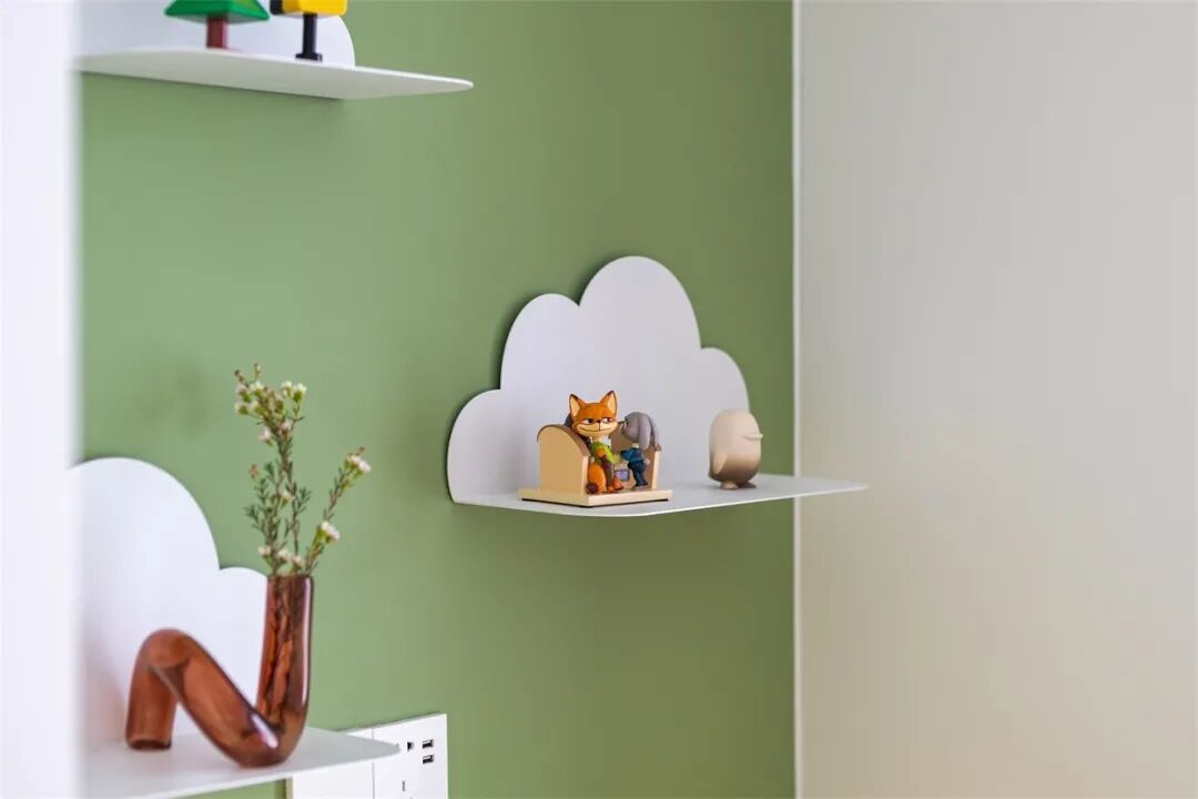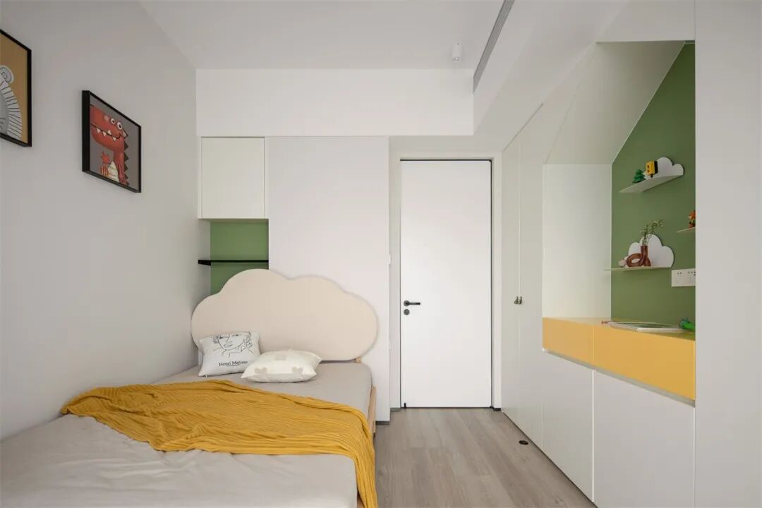 儿童房设计BEDROOM云朵床呵护了小女生的温柔乖巧,简约白色的空间用清新的黄色与绿色碰撞出活力。
