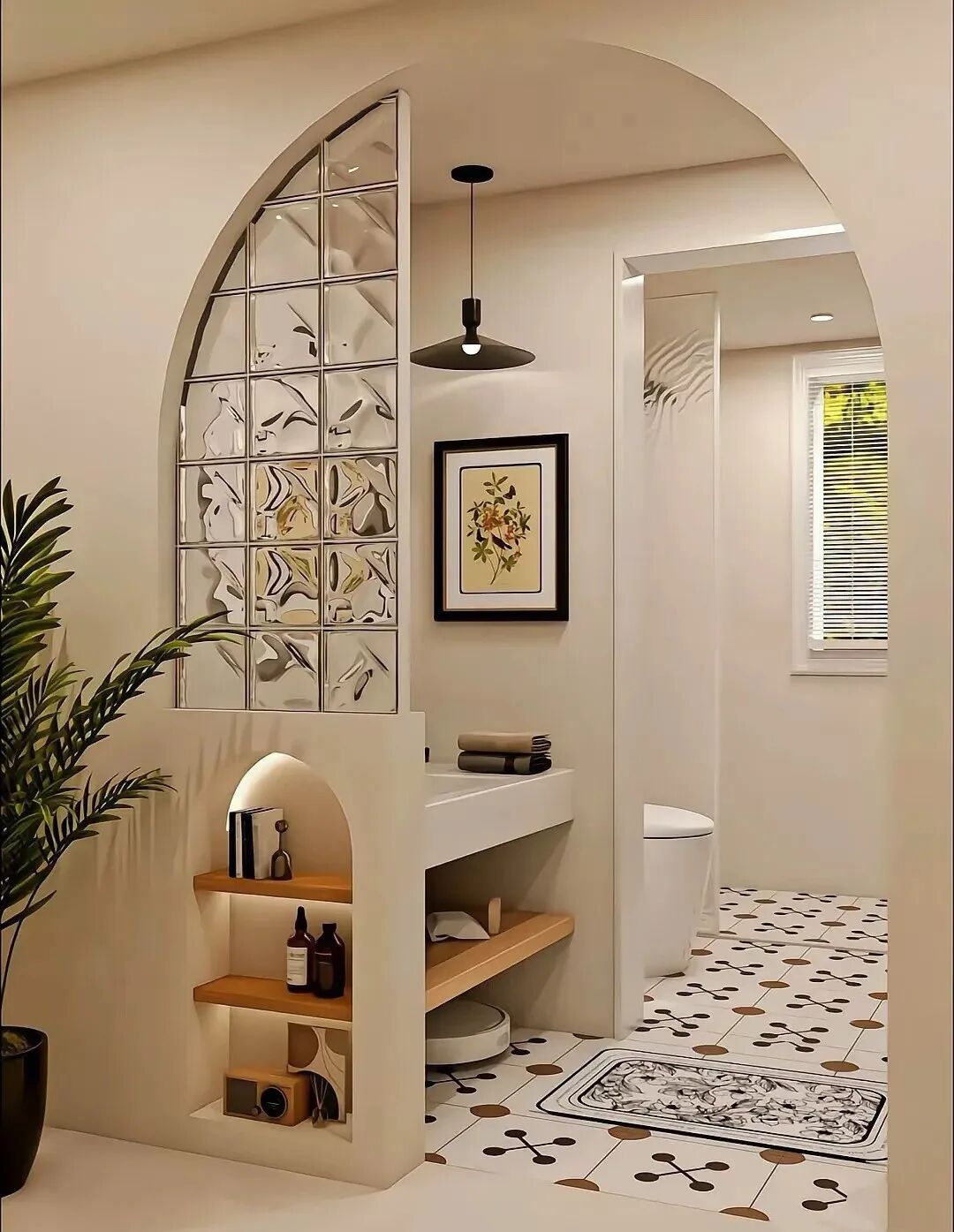 适合面积 5-6㎡的卫生间,用半墙(高度 1.2-1.5 米)+ 玻璃的组合,既能实现干湿分离,又能让空间更通透。