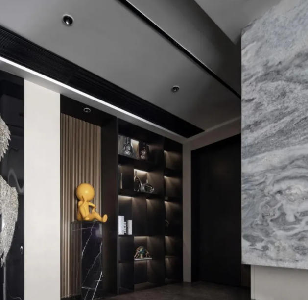 空间设计巧妙运用沉稳大气的灰黑色系大理石,提升装饰的品味与格调。呈现出一派沉静的画面。