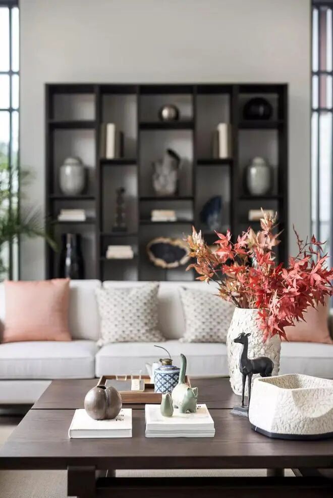 茶几上端庄的花瓶、茶具与摆饰,也让空间不经意间显得更加端庄雅致。