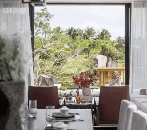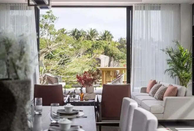客厅窗外的森林美景,坐在家里就能尽阅窗外风光,让自然与居家环境融为一体。