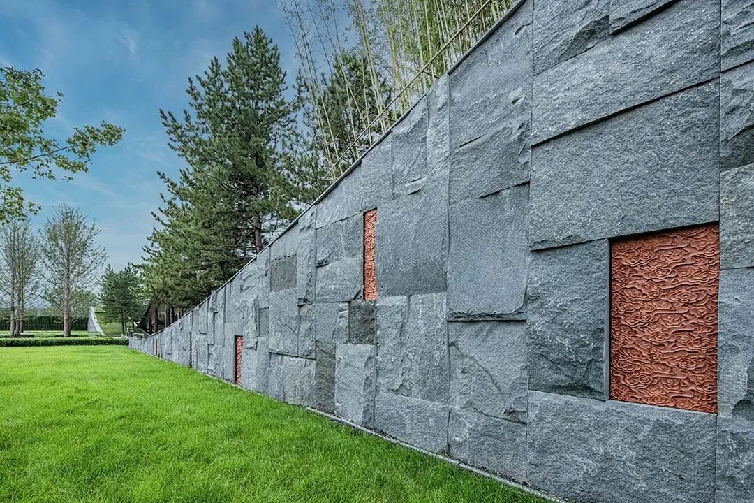 也叫龙眼面或斩假面,是用斧剁锤打在石材表面上,形成非常密集的条状纹理,有些像龙眼表皮的效果,可选择粗糙程度,中式园林中常用的饰面。