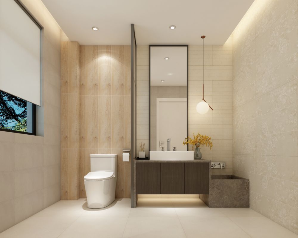 在做卫生间瓷砖铺贴设计的同时,需要将墙面悬挂物品的位置标记出来,这样整个空间看上去会更加和谐和美观。