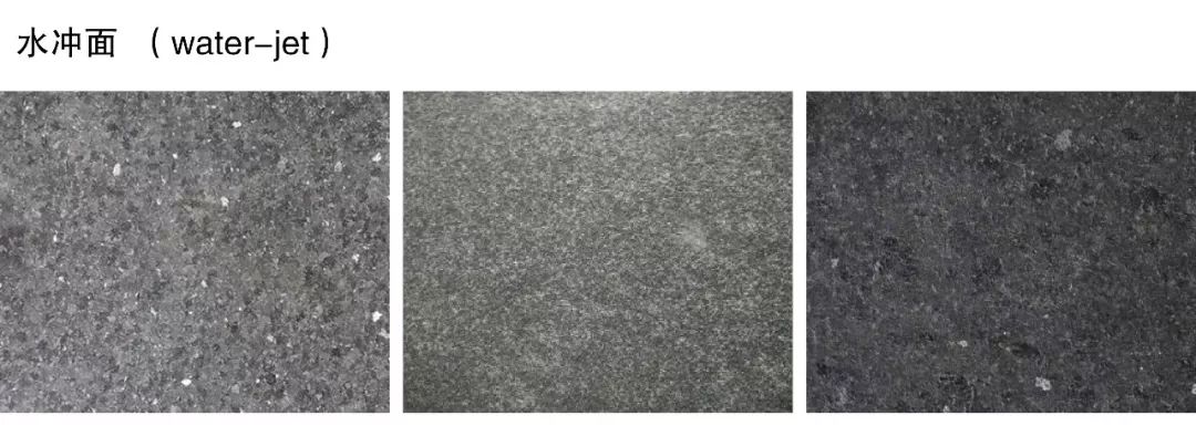 (13)水冲面(water-jet):用高压水直接冲击石材表面,剥离质地较软的成分,形成独特的毛面装饰效果。
