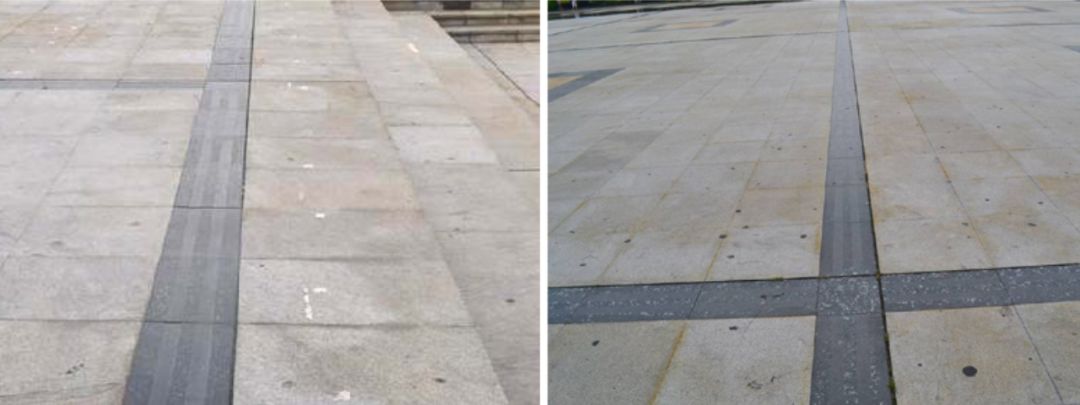 重要节点铺装排版时,图上放样和实地放样相结合。无法满足所有板材套用模数时,可在边角等较隐蔽部位出现45°对拼或大小板材,大面铺装板材规格应尽量统一,以降低施工难度。