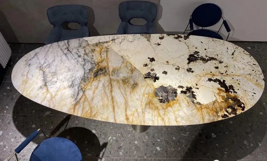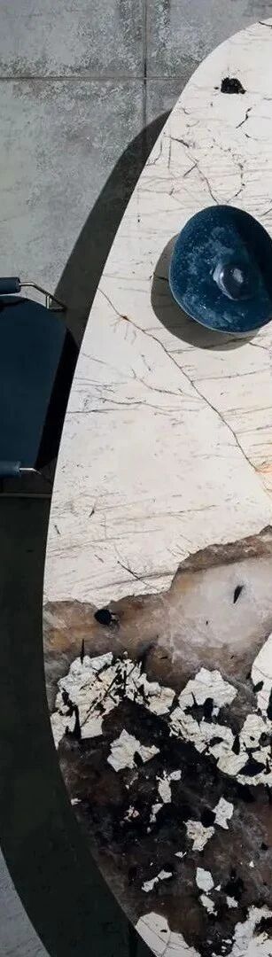 潘多拉餐桌,展现出不凡的优雅与品味,为整体空间营造出轻松而雅致的气息。温润而色泽明亮的石材,在暖光下显得温柔饱满。