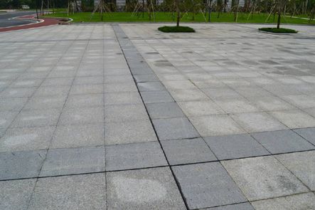 伸缩缝的设置必须合理、美观,饰面铺装、波打线与结构层统一考虑、预留