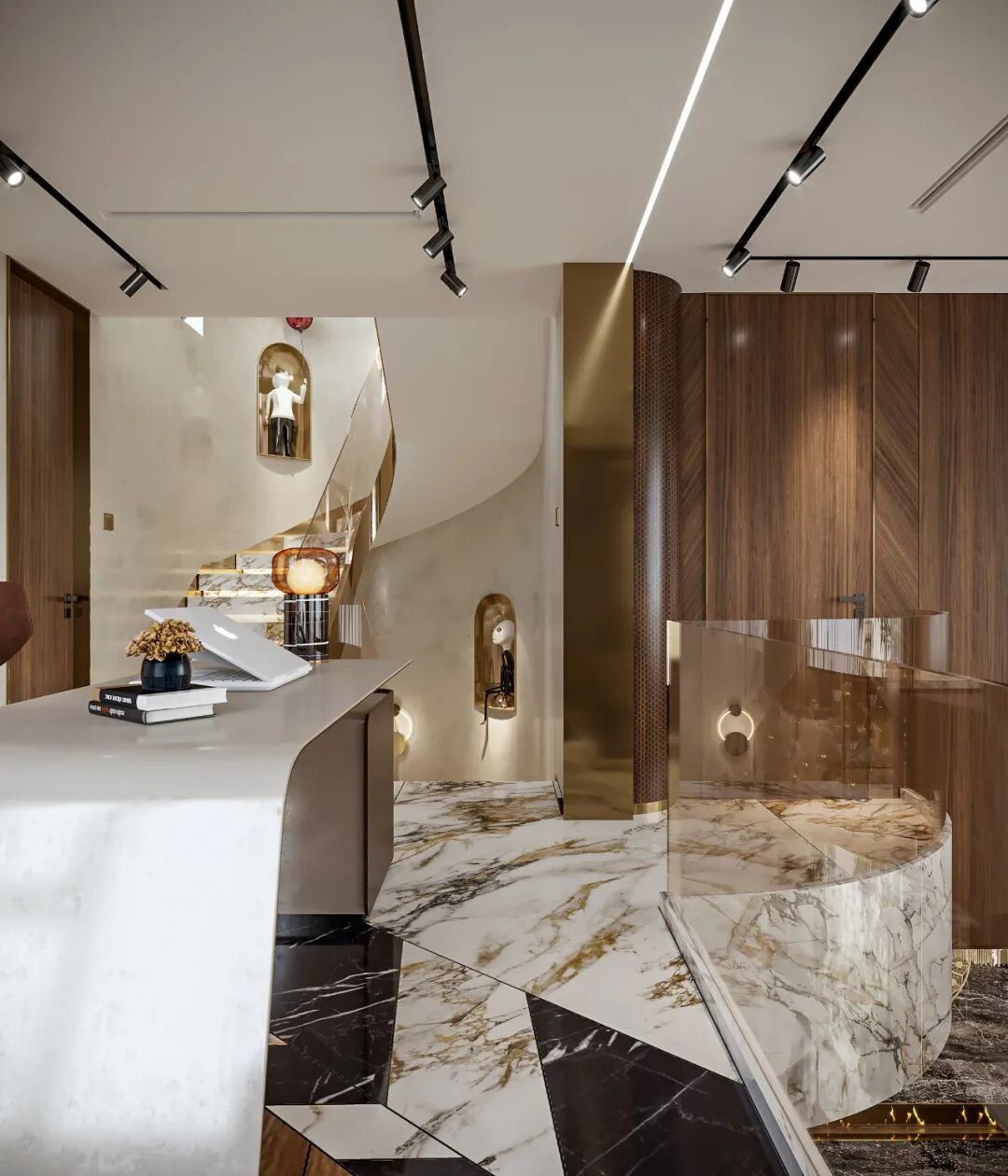 最好的设计,总是源于理想主义的初衷。自然巧妙的设计语言+不同质感的对比,碰撞出时尚、艺术、奢华的质感,从而构成了设计师徐跃兵对奢华超级豪宅的诠释。
