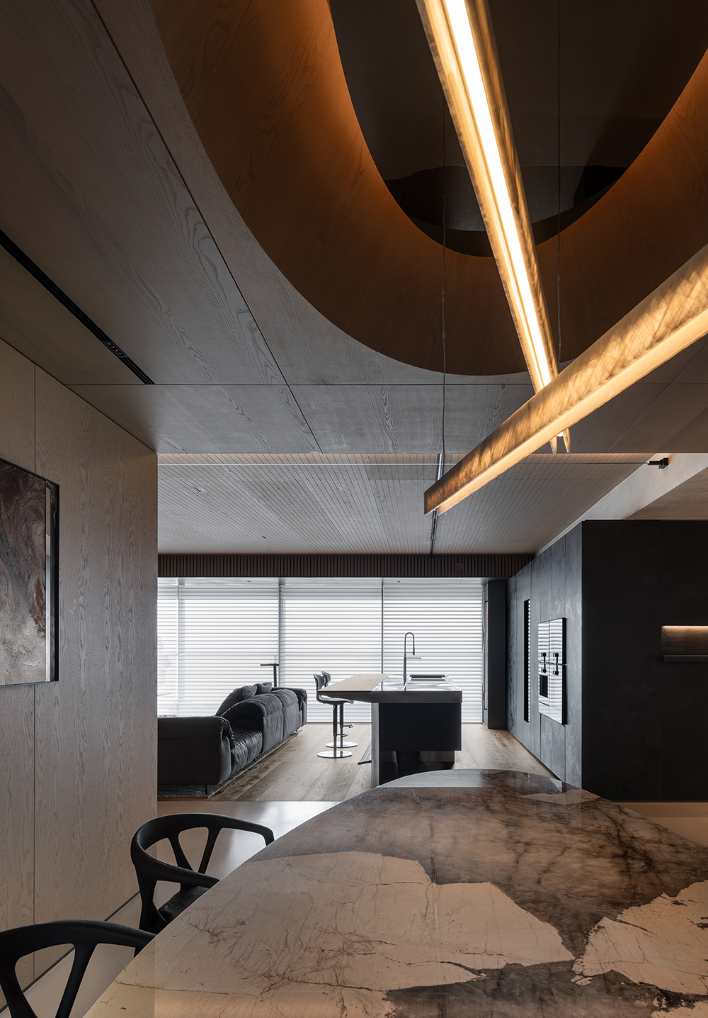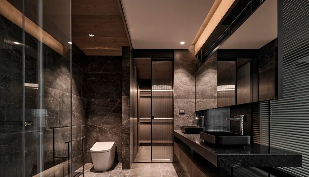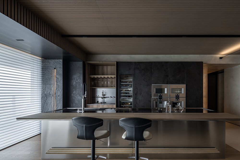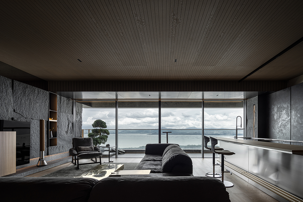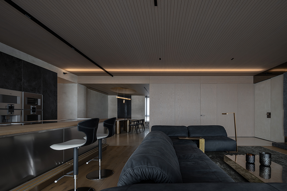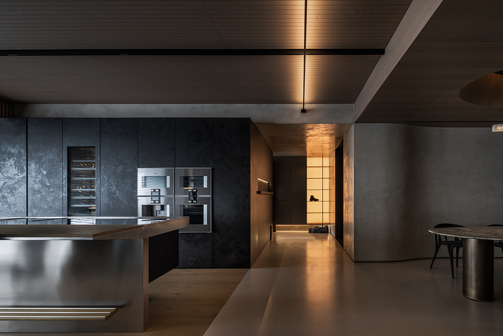 石材的厚重、手刷铜的质感、皮革的柔和与木皮的自然质朴,通过比例的调和,在这个空间中得到了完美展现。