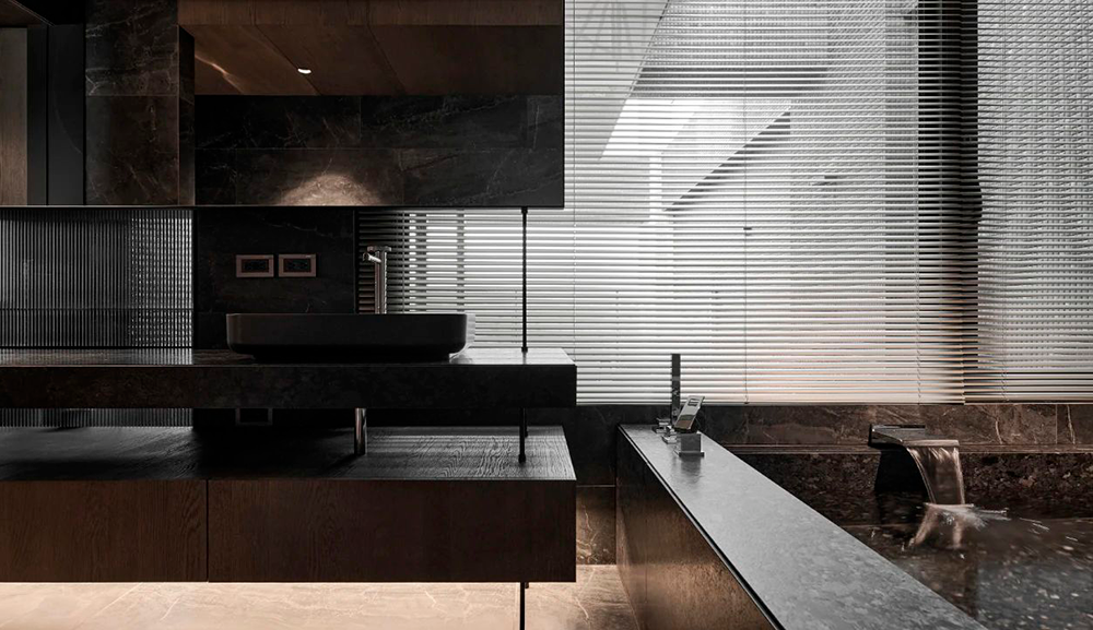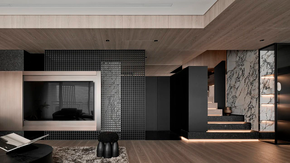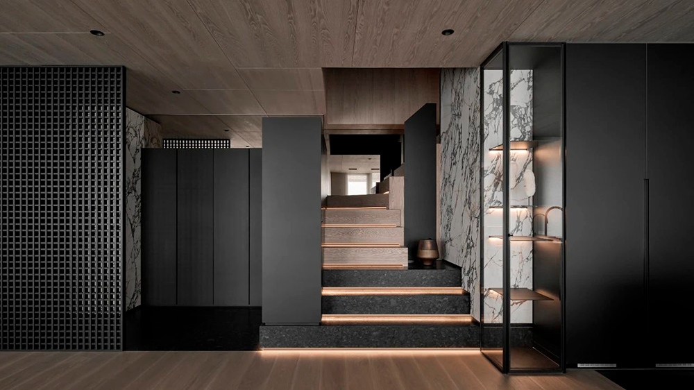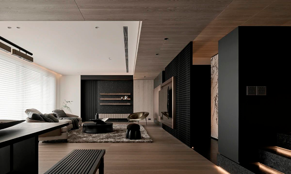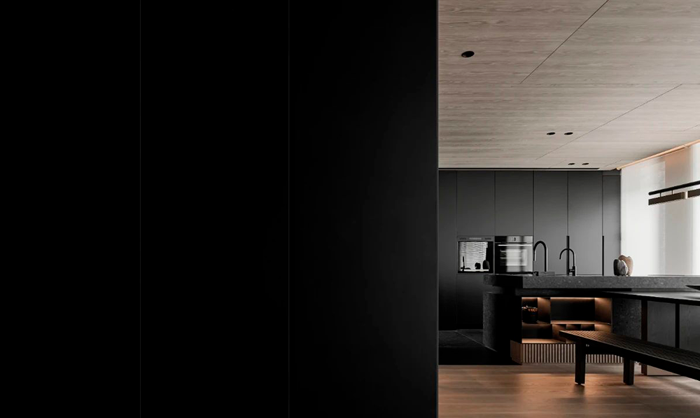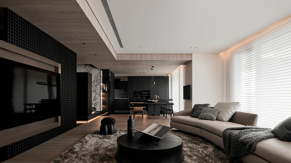整体设计以黑色贯穿,构建出一种内敛而奢华的氛围,在大气中蕴含着细腻,在现代感中融合自然的灵动,利用不同材质与加大色彩对比,营造出深邃且静谧的现代之家。