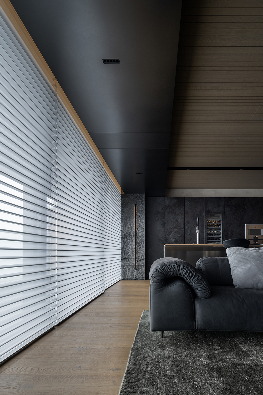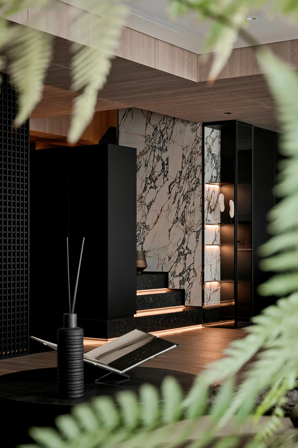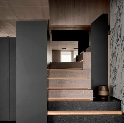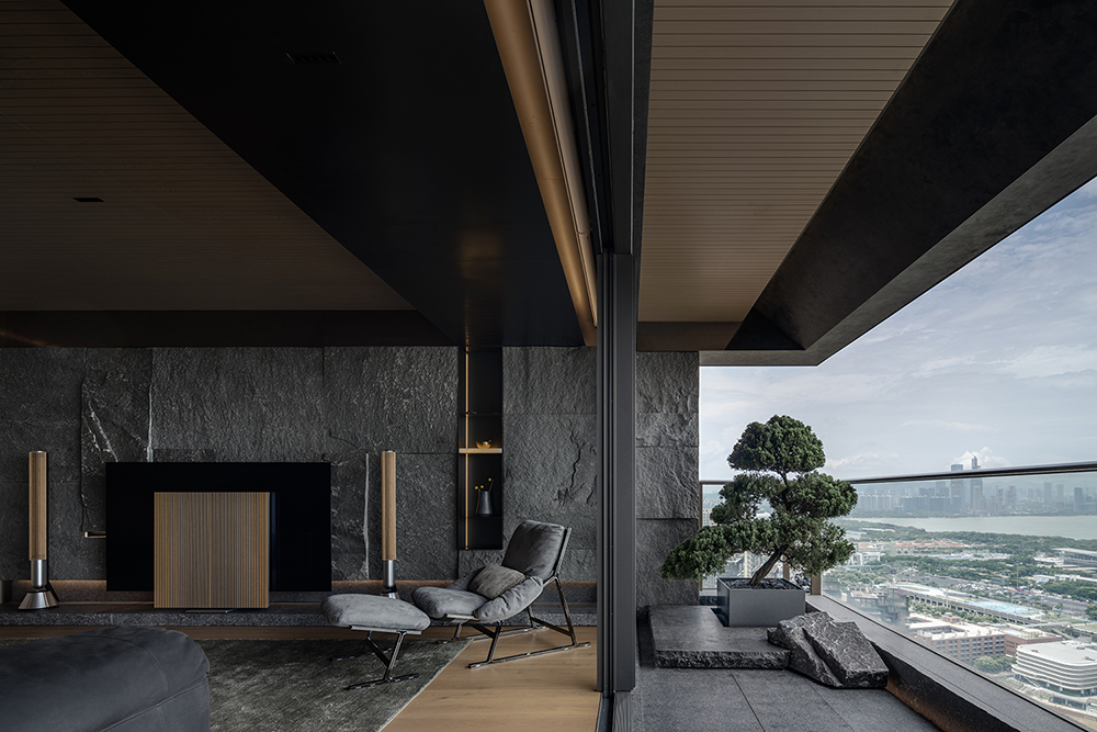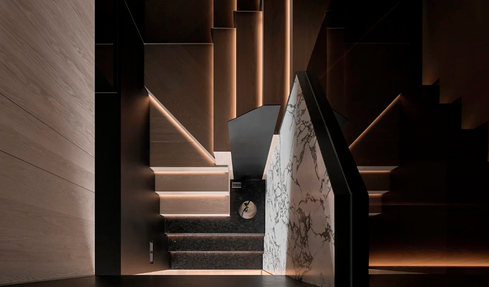 整体设计以黑色贯穿,构建出一种内敛而奢华的氛围,在大气中蕴含着细腻,在现代感中融合自然的灵动,利用不同材质与加大色彩对比,营造出深邃且静谧的现代之家。