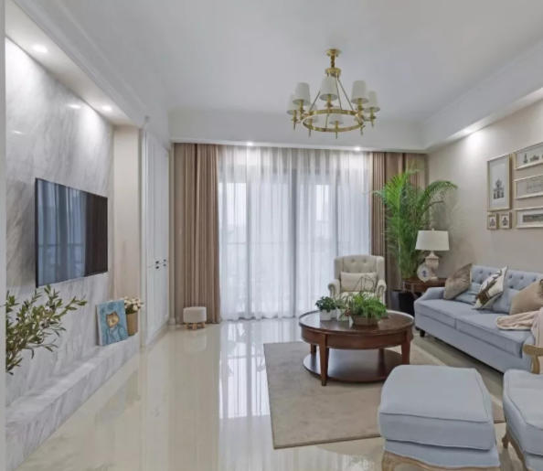 这是一套120平米的清雅致调美式休闲风案例,业主是小两口+两只猫,这套房子准备结婚用的,家里常住2人,以后会有小宝宝,业主非常喜欢这种干净清爽、自然温暖休闲格调。