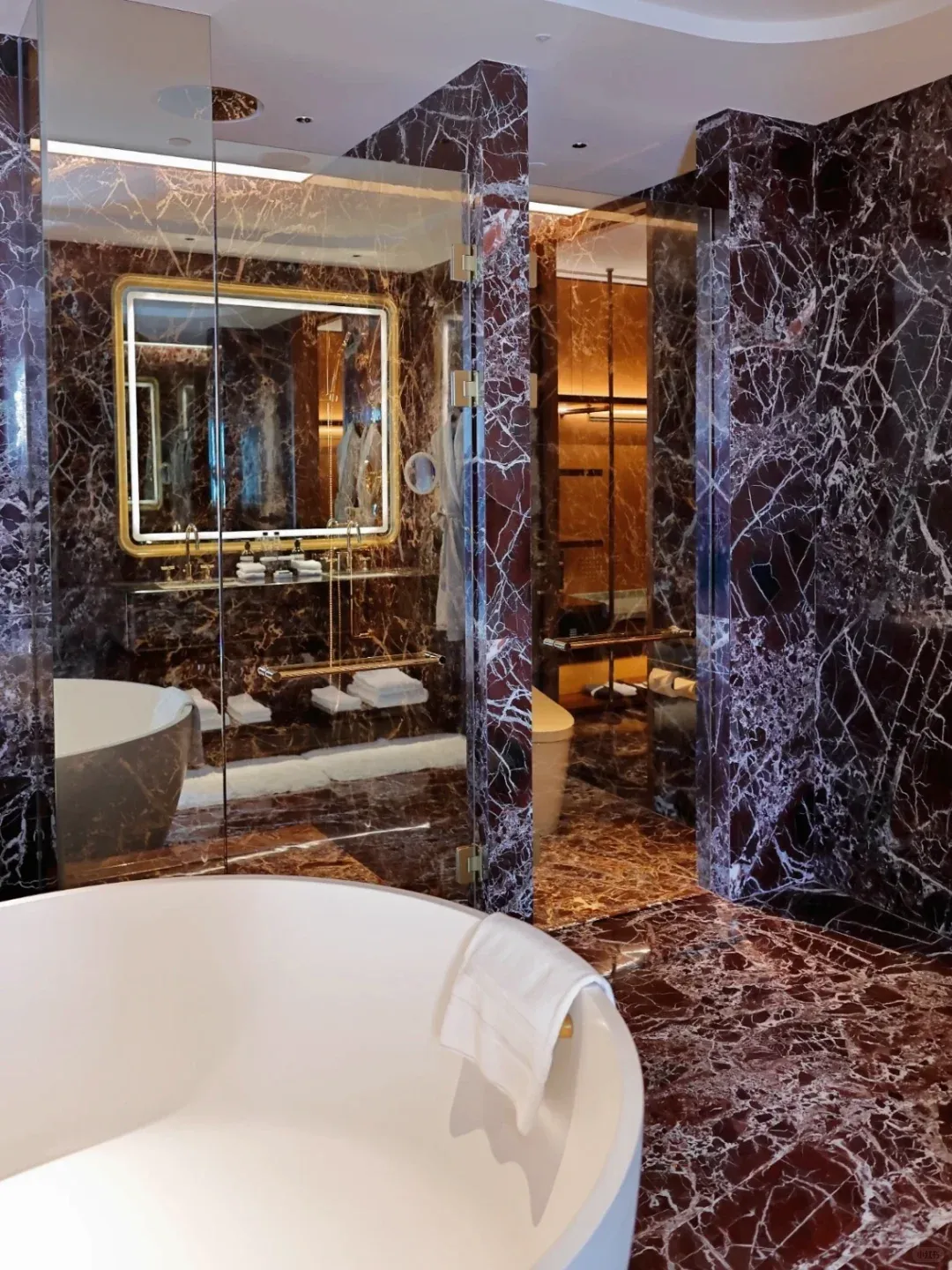 大理石案例 | 紫罗红卫生间的视觉冲击力