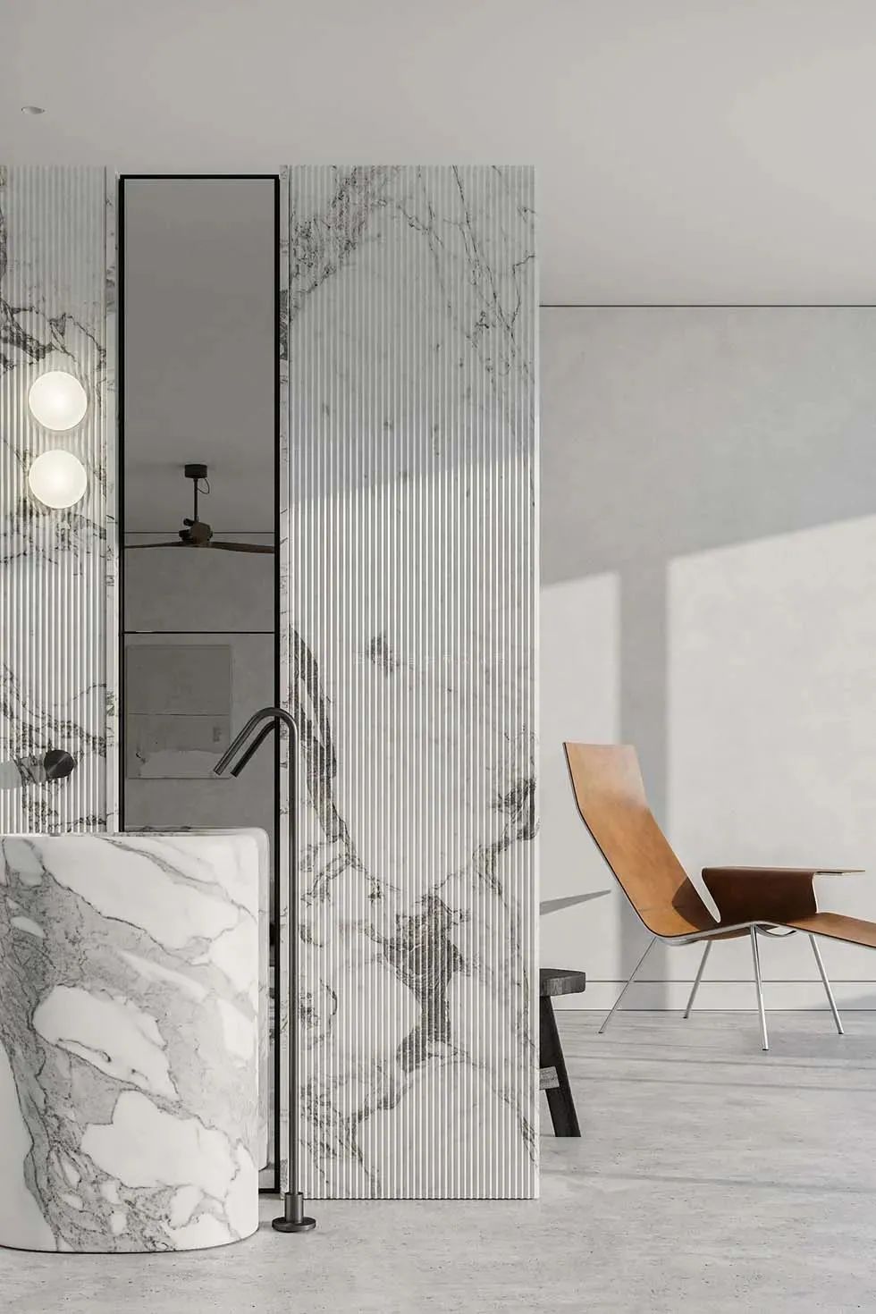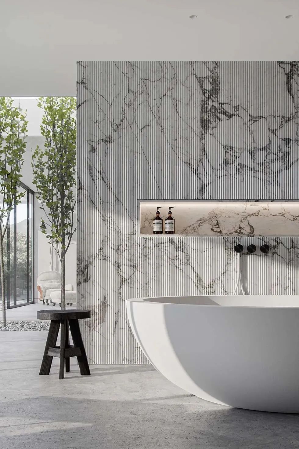 以大理石为例,其表面处理至关重要,因为设计师们都会根据石材的种类和纹样不同、软硬程度以及特性等,选择合适的表面处理形式,再将其呈现在室内空间中。