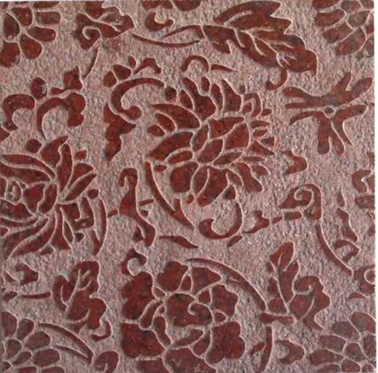 用水刀机加工冲洗石材表面,呈现出凹凸不平状,但表面光滑无棱角,近似于酸洗面,但表面颜色接近光面,比酸洗面稍深,吸水率小。