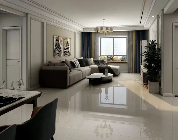 客餐厅、厨卫以浅色系素色为主,小空间用小花砖点缀。灰色系、白色系、奶白色、奶黄色是百搭色。如果家具和墙面都偏浅,瓷砖就选深色;反之相反。