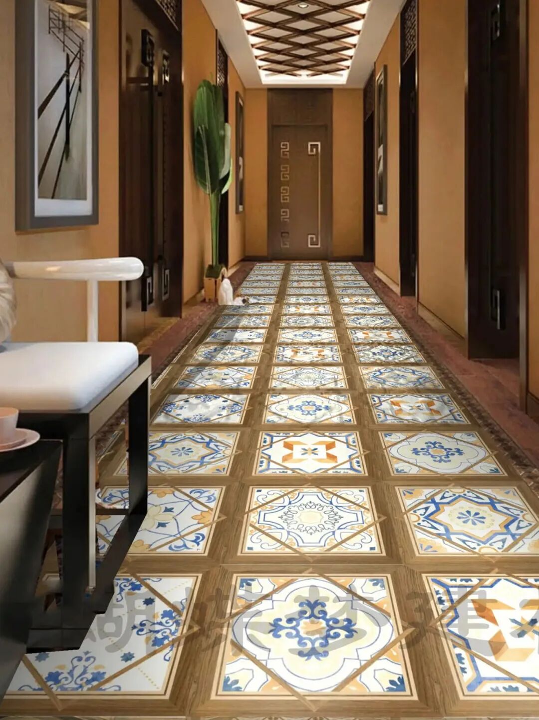 适合各种异型砖、复古花砖以及不同材料之间的混搭拼铺。能划分空间,比如玄关和客厅、开放式厨房和客厅等。对工人技术要求高,注意收口和高度差问题。