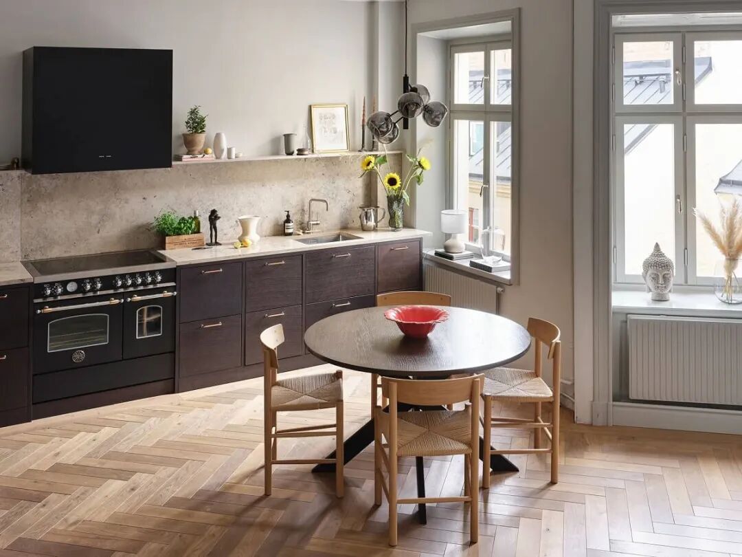 瑞典哥德堡一座19世纪90年代的历史建筑,设计是斯堪的纳维亚风格,保留了两个原始瓷砖壁炉,充满历史元素和现代家具的可爱组合。另一大特色是它的存储解决方案,每个房间都配备了落地式橱柜或衣柜,创造了充足的存储空间,使房间保持整洁有序。