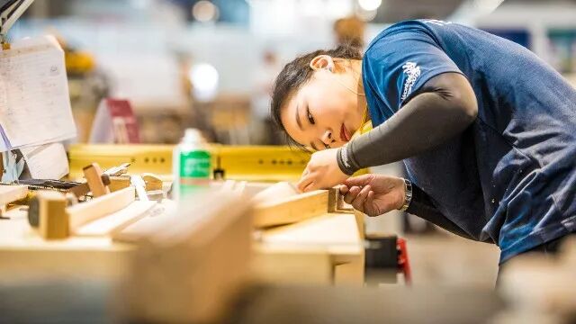 以2019年喀山世界技能大赛精细木工项目为例,在该项目中,选手需要在4天共22个小时内通过手工和机器设备,使用各种形式的榫卯接头连接两个或以上的木质零部件,每一个接缝处的缝隙大小不得超过0.4毫米。