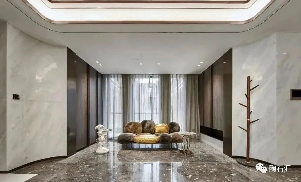 石材案例 | 716㎡潮玩之家,灰白大理石装饰时尚高雅