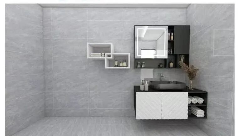 卫生间作为家中使用频率较高的一个区域,地面容易湿滑、积水,可选用800X800mm、600X1200mm的瓷砖进行铺贴,方便后续调整空间坡度,打造干湿分离空间。