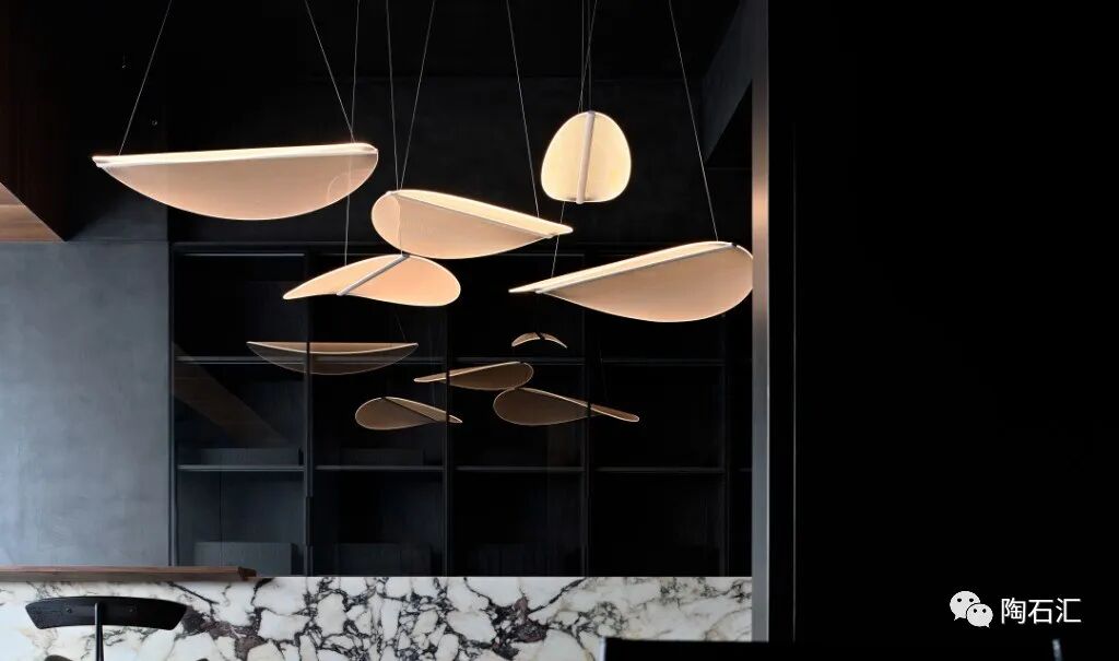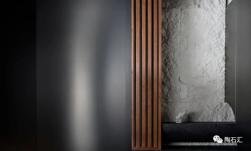 呼应着「原石引力」的概念主题,本案将石材肌理可视化的展示发挥。