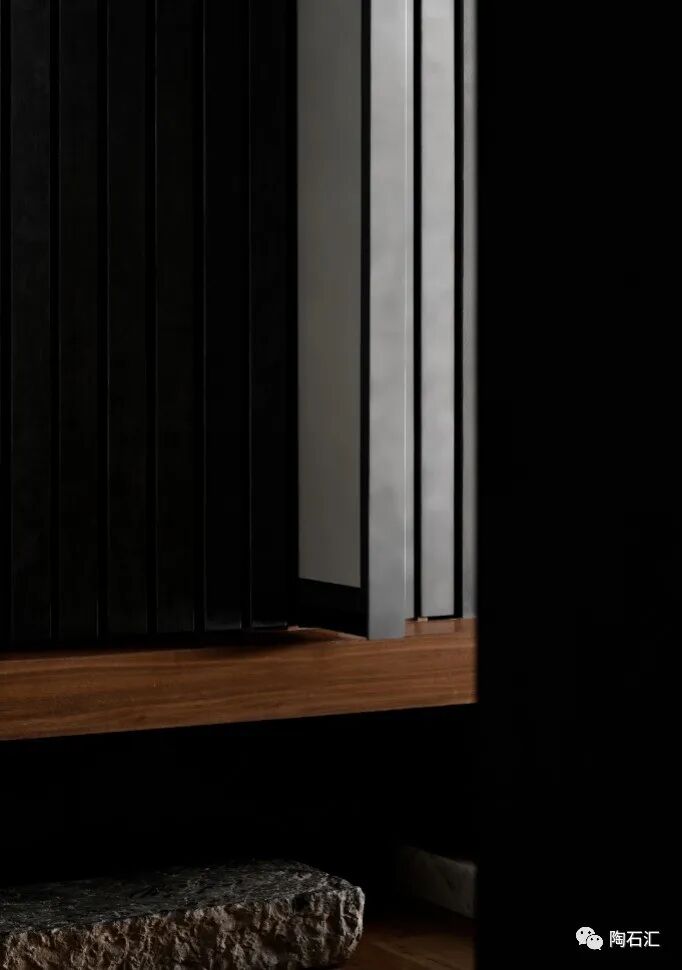 自然肌理的原木色、与陨石质感相仿的墨灰色,纯净素白的自然风化蘑菇石,干脆、利落、整洁的色彩搭配,刻画着自然原生的生命轨迹。