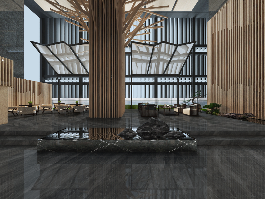 涓涓流水的浅灰色,如楚辞有云:浩浩沅湘,分流汨兮。水浪滔滔,奔腾不止,用设计的语言重温这份诗意,营造温润雅致的空间体验。
